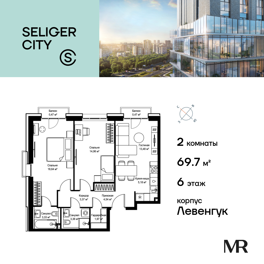 Квартира в Селигер Сити 69.77м2 на 6 этаже за 39 113 062 Р.