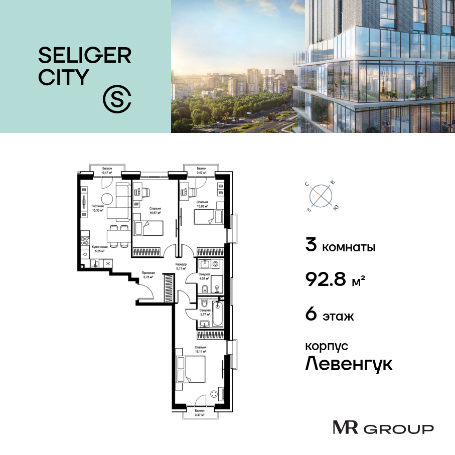 Квартира в Селигер Сити 92.82м2 на 6 этаже за 49 621 572 Р.