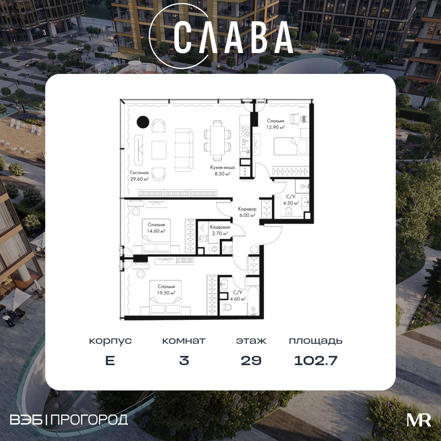 Квартира в SLAVA 102.70м2 на 29 этаже за 110 186 830 Р.
