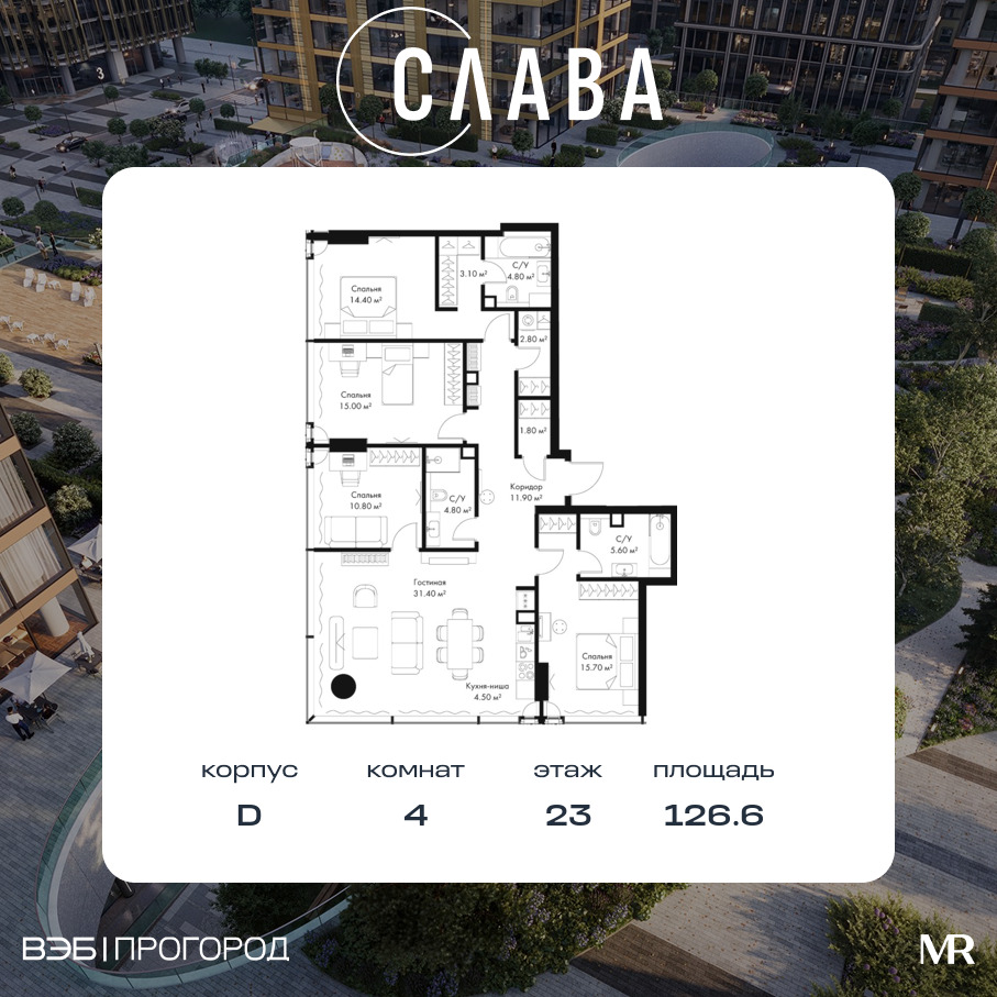Квартира в SLAVA 126.60м2 на 23 этаже за 137 019 180 Р.
