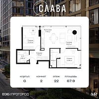 Квартира в SLAVA 33.20м2 на 22 этаже за 34 840 080 Р.
