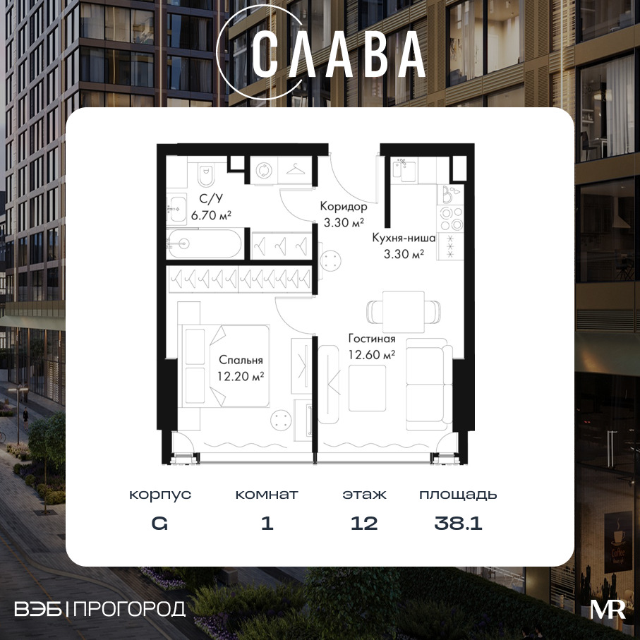 Квартира в SLAVA 38.10м2 на 12 этаже за 44 173 140 Р.
