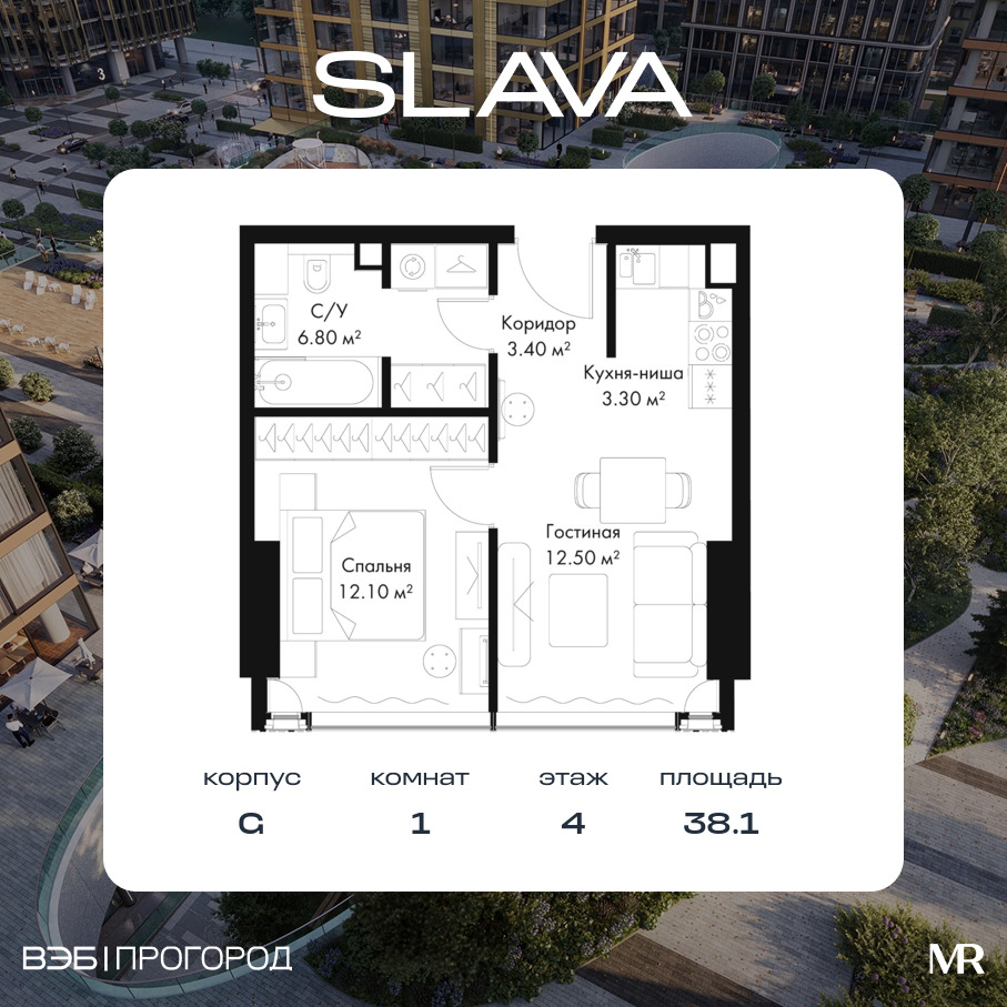 Квартира в SLAVA 38.10м2 на 4 этаже за 42 786 300 Р.