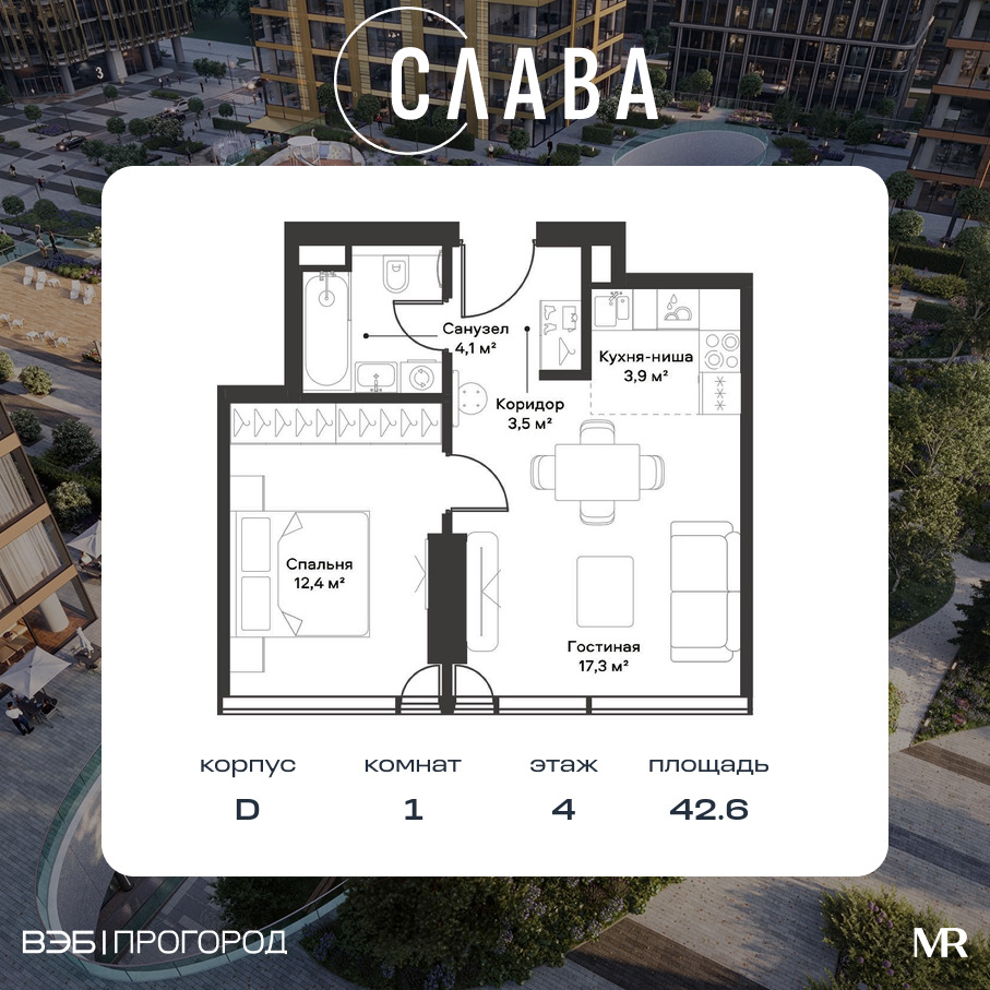 Квартира в SLAVA 42.60м2 на 4 этаже за 44 666 100 Р.