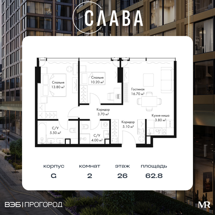 Квартира в SLAVA 62.80м2 на 26 этаже за 67 440 920 Р.