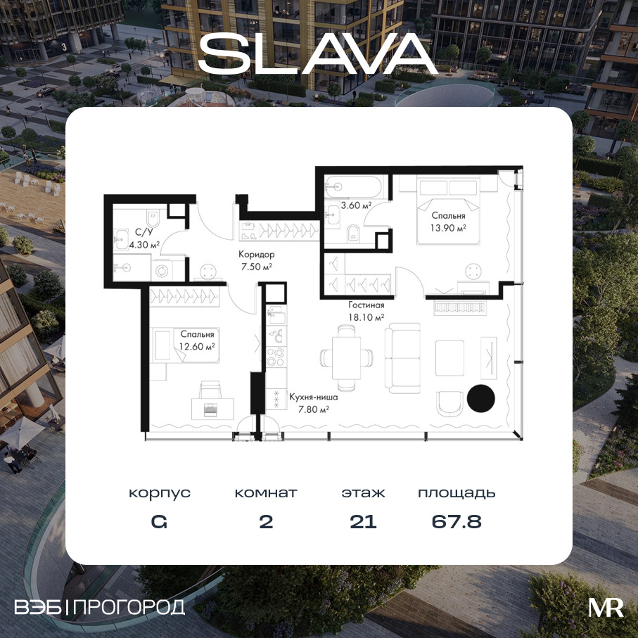 Квартира в SLAVA 67.80м2 на 21 этаже за 76 308 900 Р.
