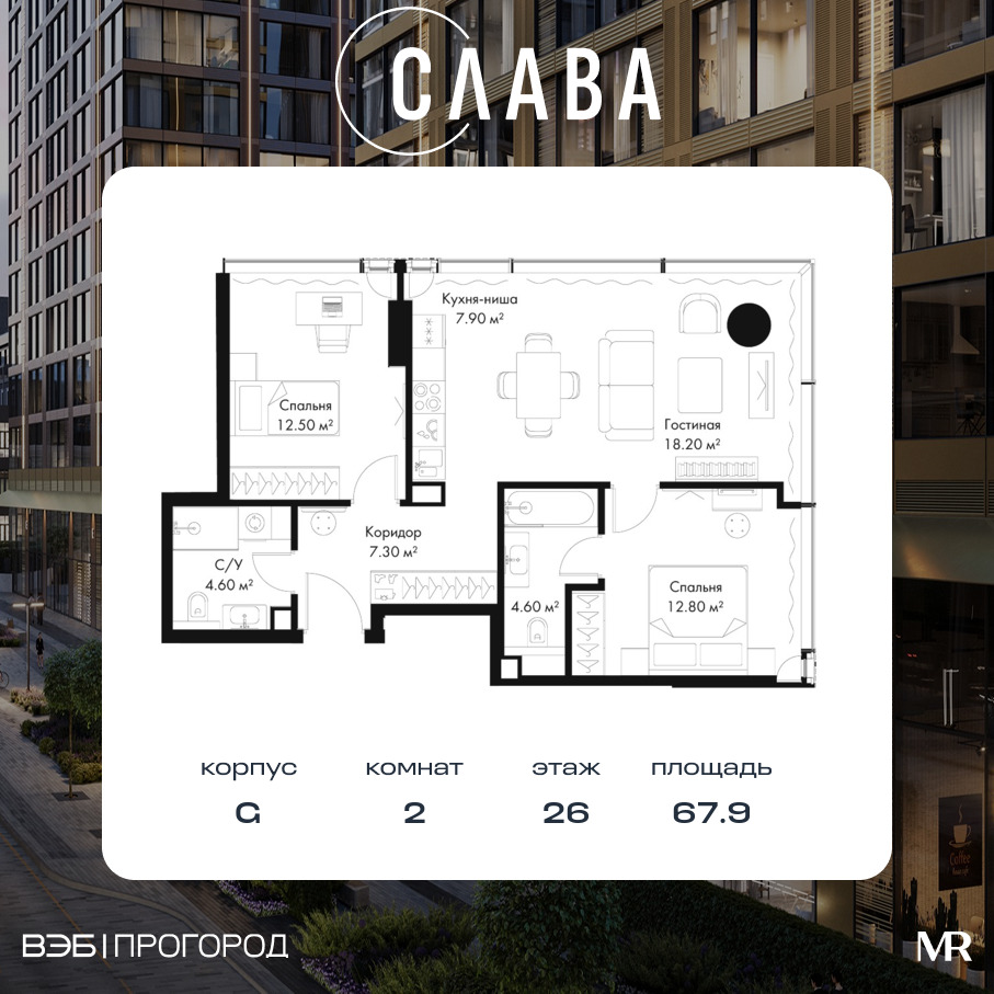 Квартира в SLAVA 67.90м2 на 26 этаже за 78 105 370 Р.