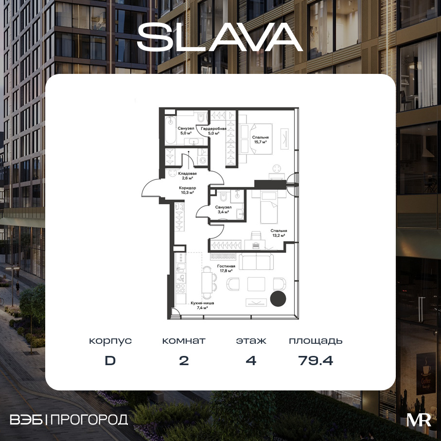 Квартира в SLAVA 79.40м2 на 4 этаже за 74 723 340 Р.