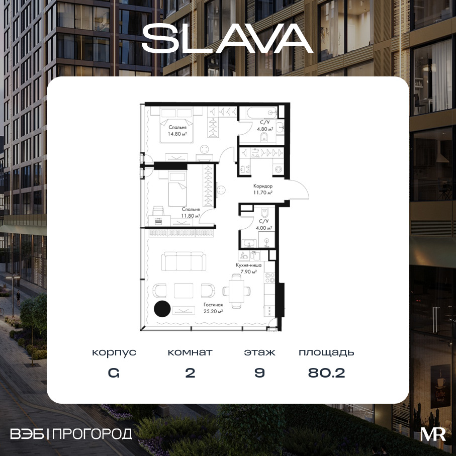 Квартира в SLAVA 80.20м2 на 9 этаже за 84 691 200 Р.
