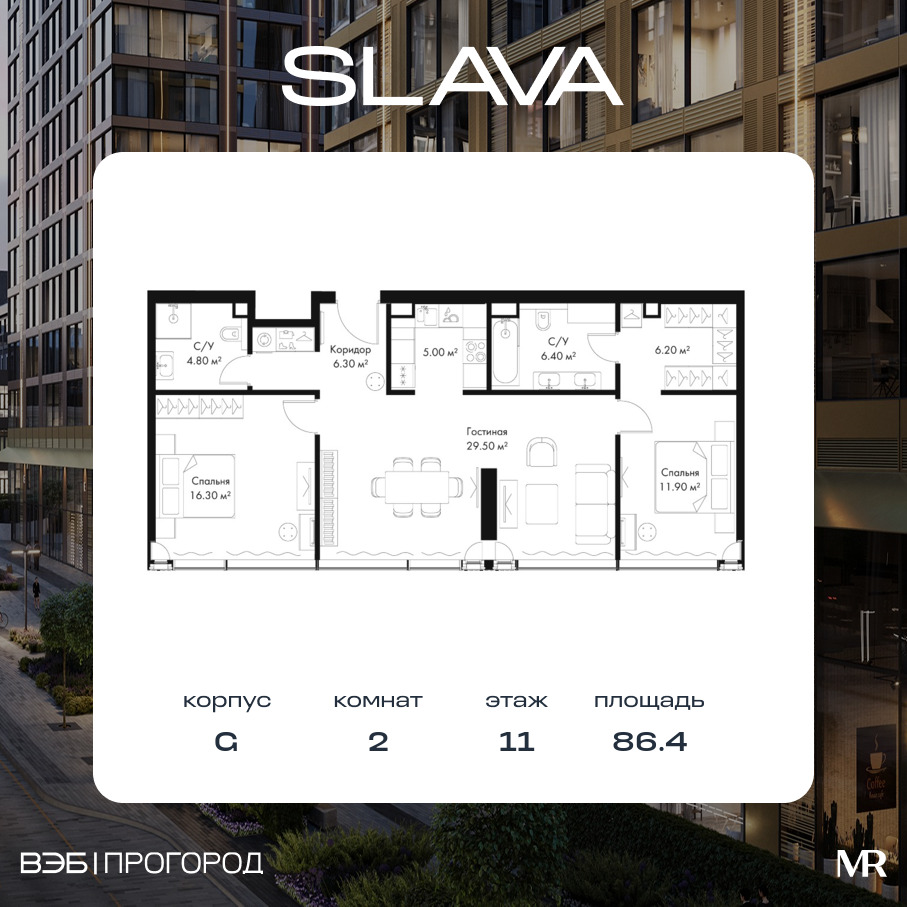 Квартира в SLAVA 86.40м2 на 11 этаже за 89 812 800 Р.