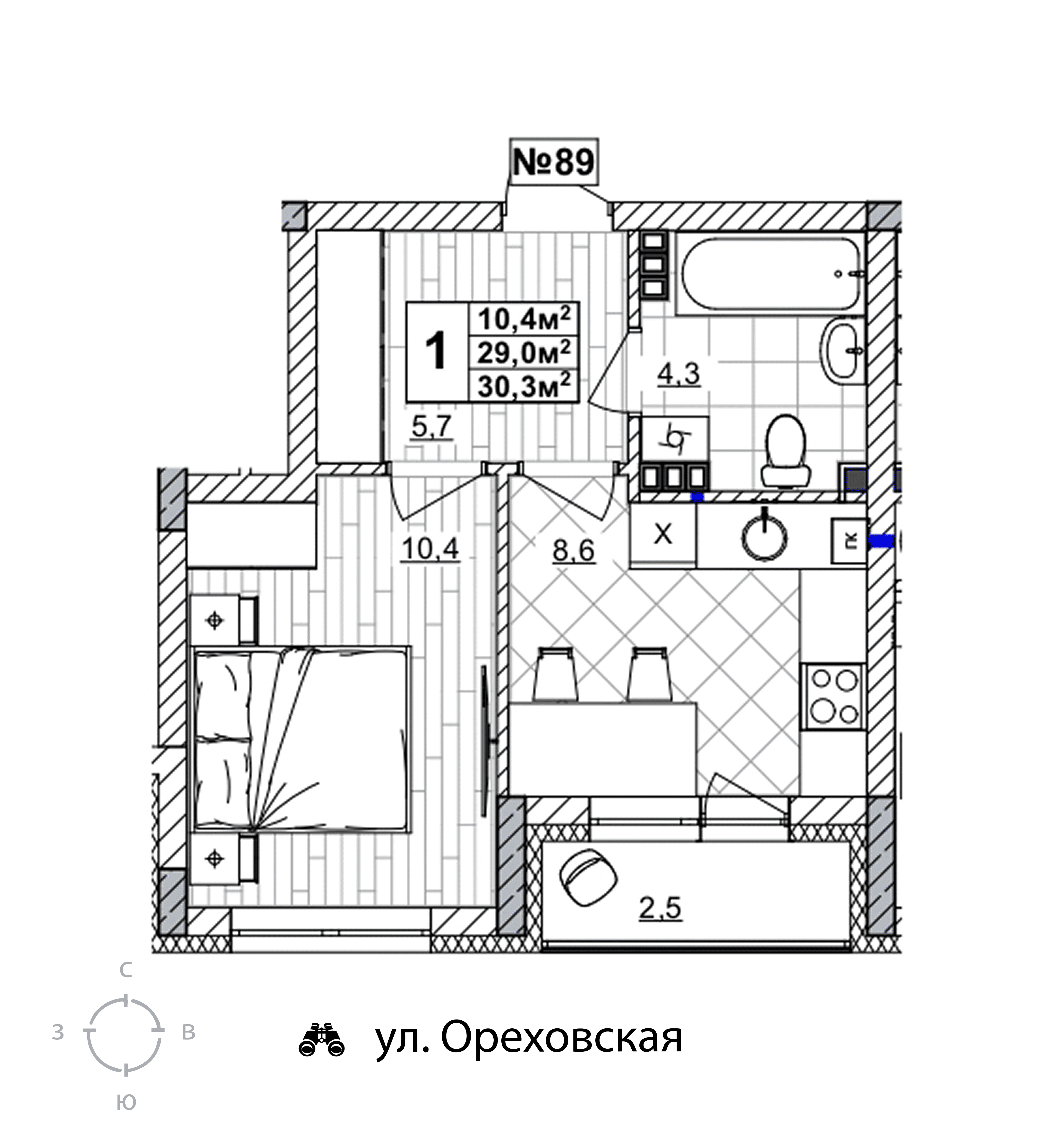 1-комнатная квартира - 30.3м2