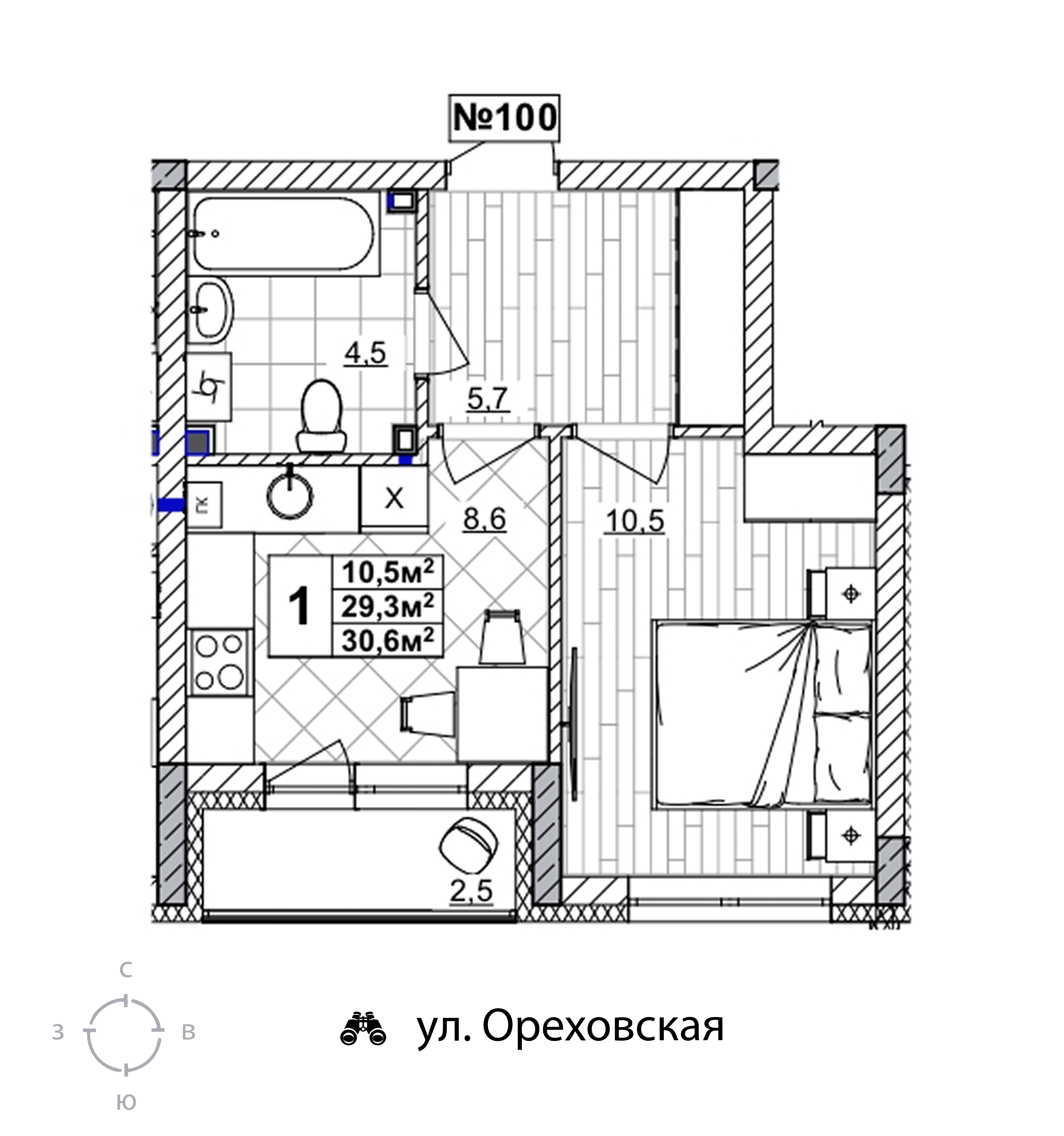 Квартира в Смородина 30.6м2 на 1 этаже за 5 190 000 Р.