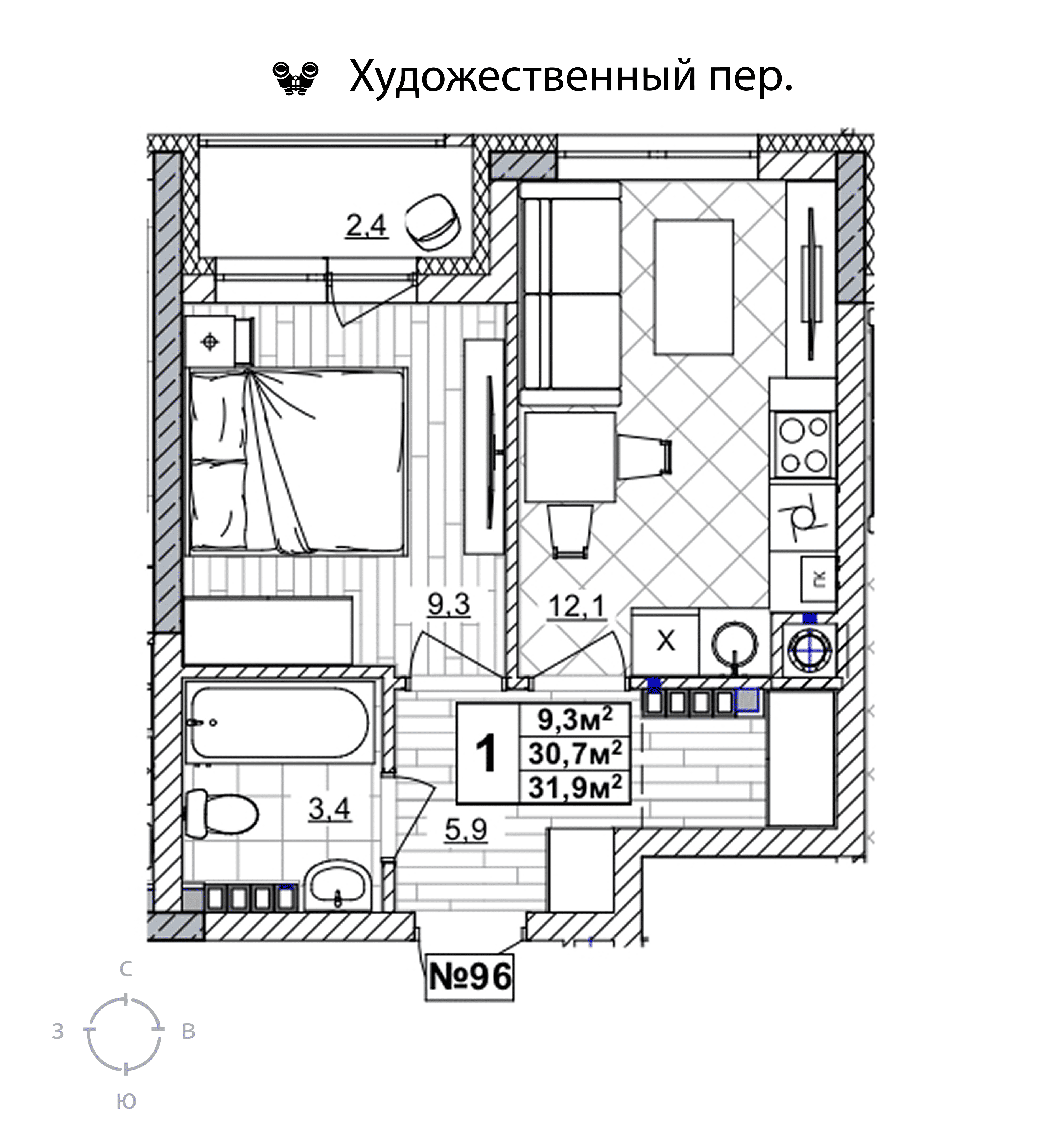 1-комнатная квартира - 31.9м2