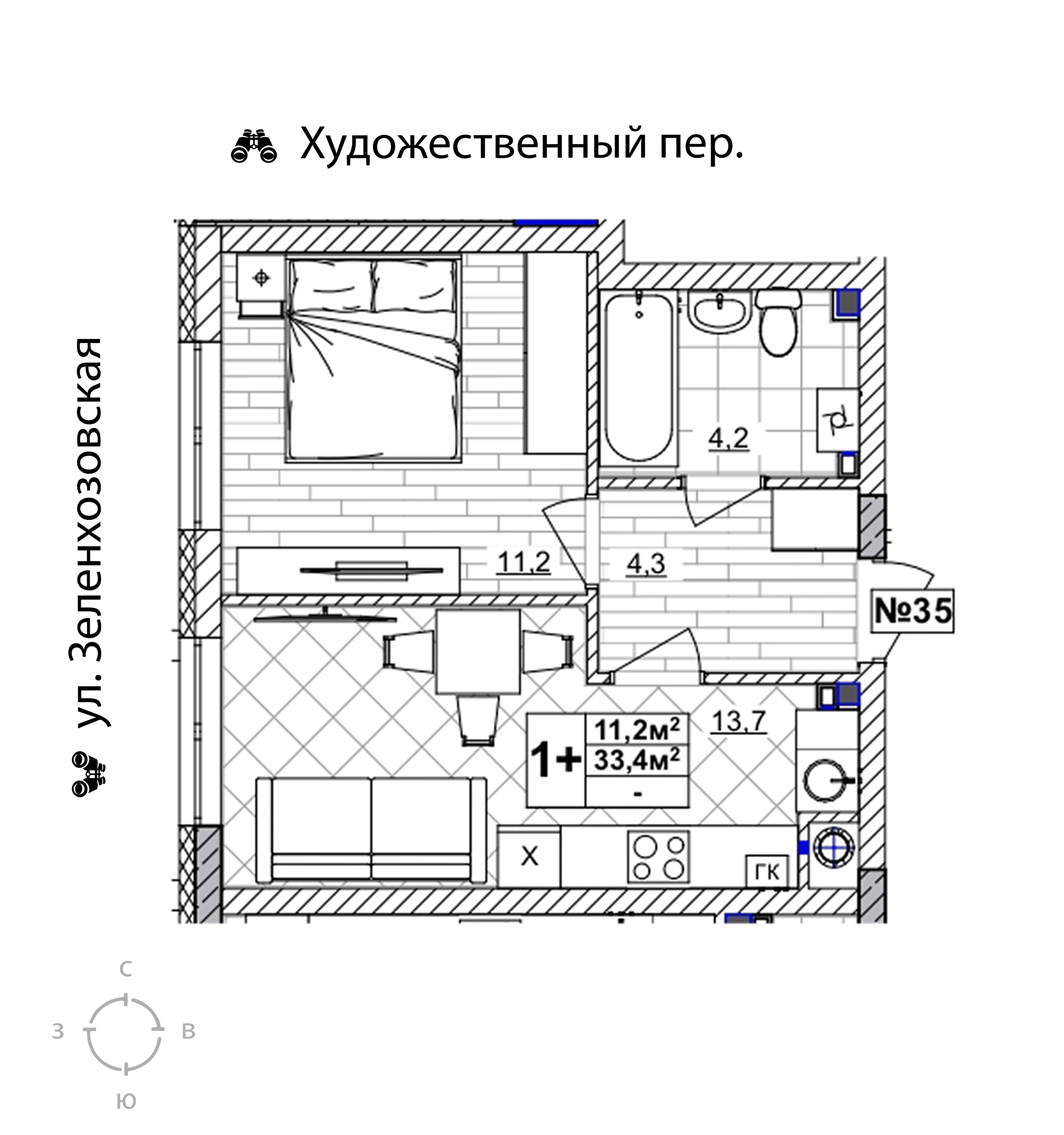 1-комнатная квартира - 33.4м2
