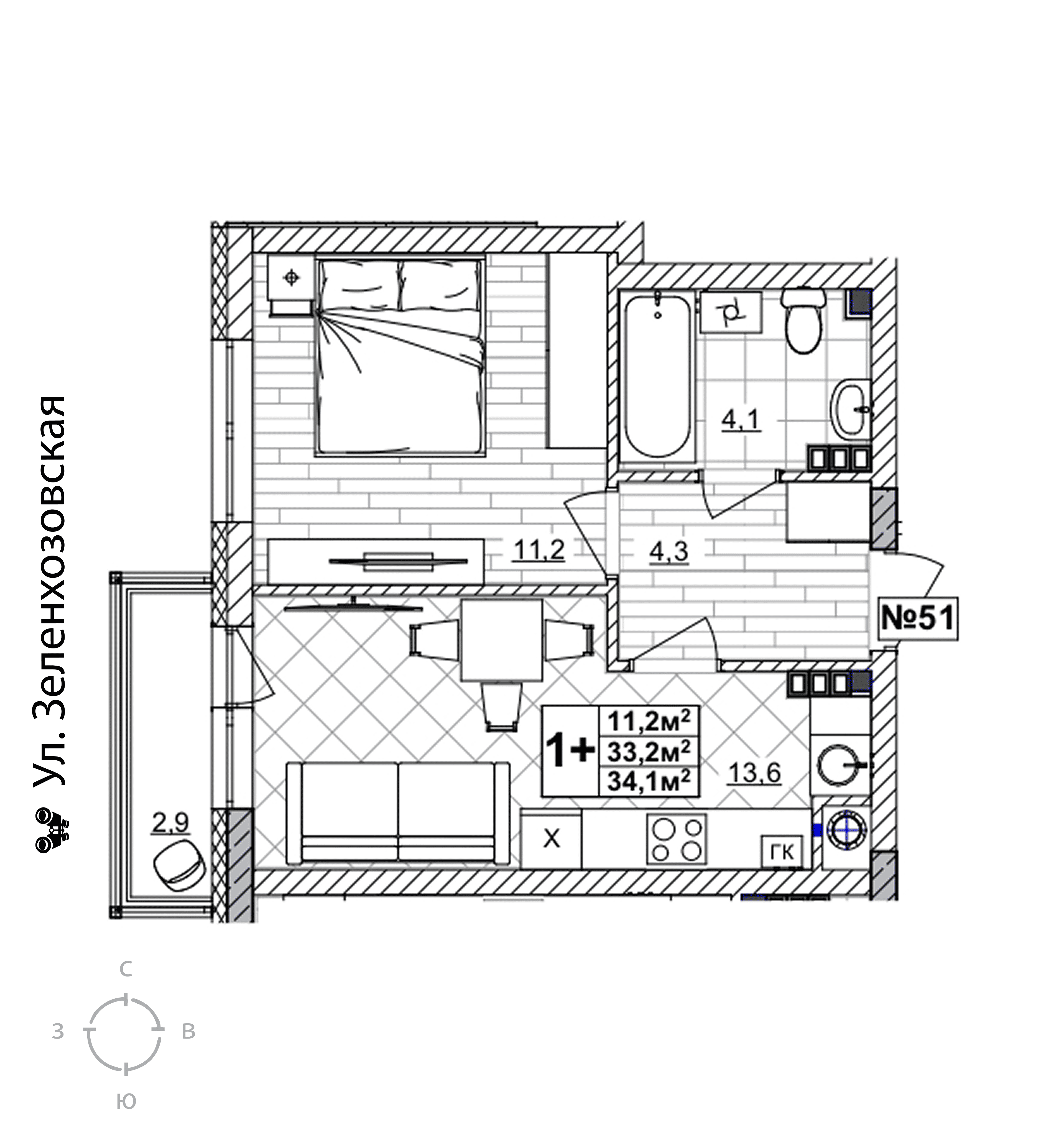 Квартира в Смородина 34.1м2 на 3 этаже за 6 790 000 Р.