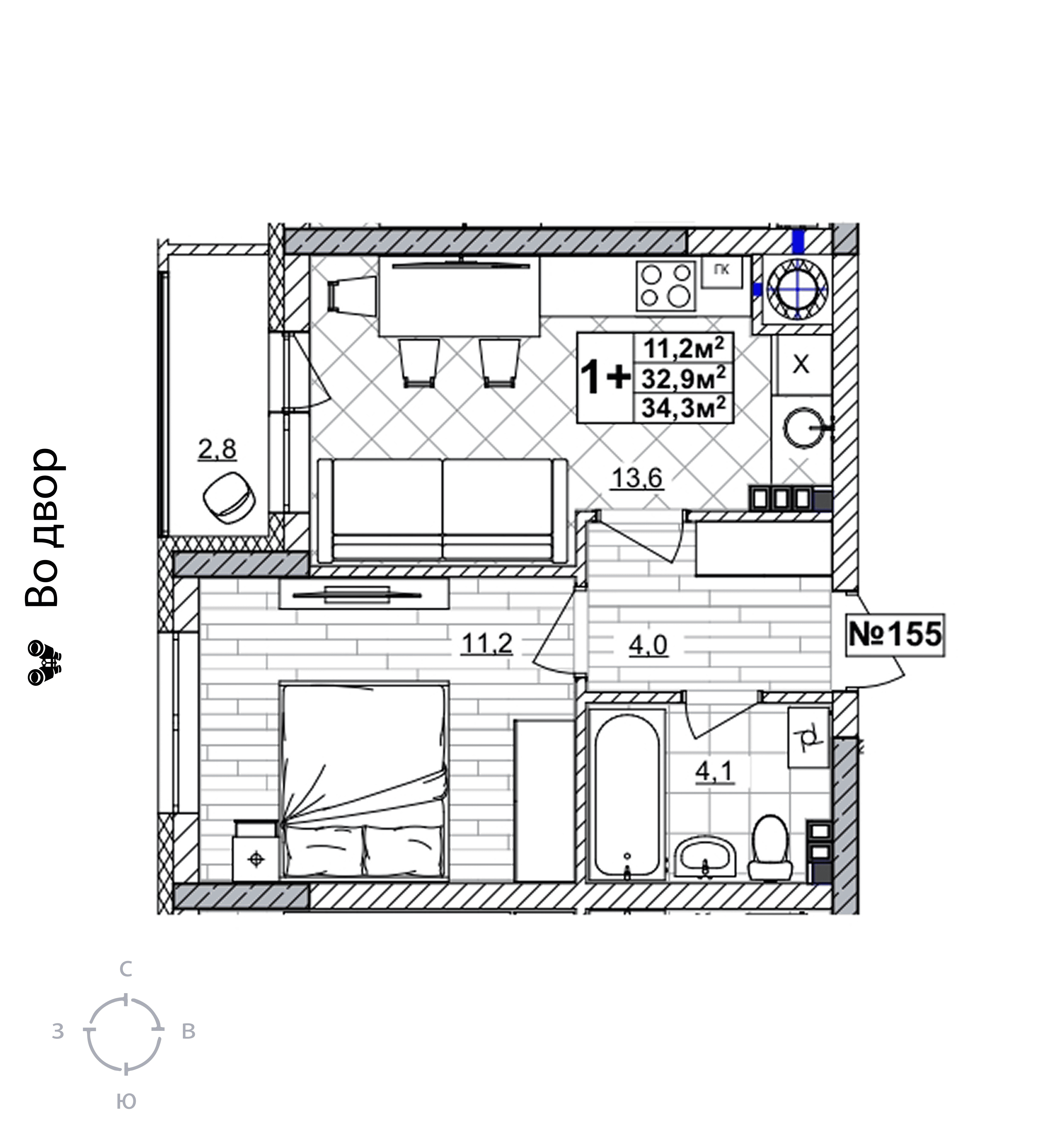 Квартира в Смородина 34.3м2 на 3 этаже за 6 890 000 Р.