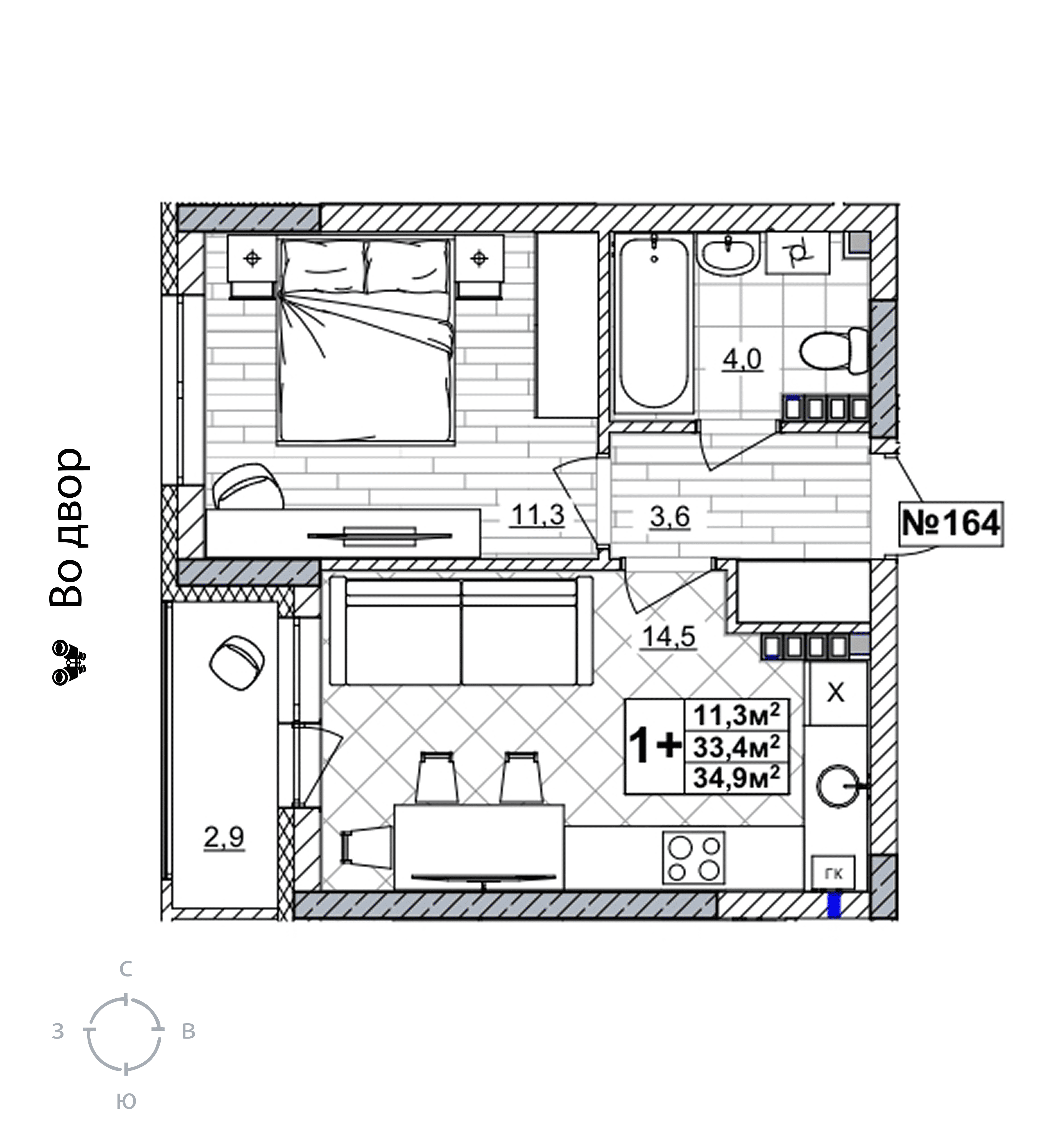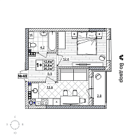 1-комнатная квартира - 34.9м2