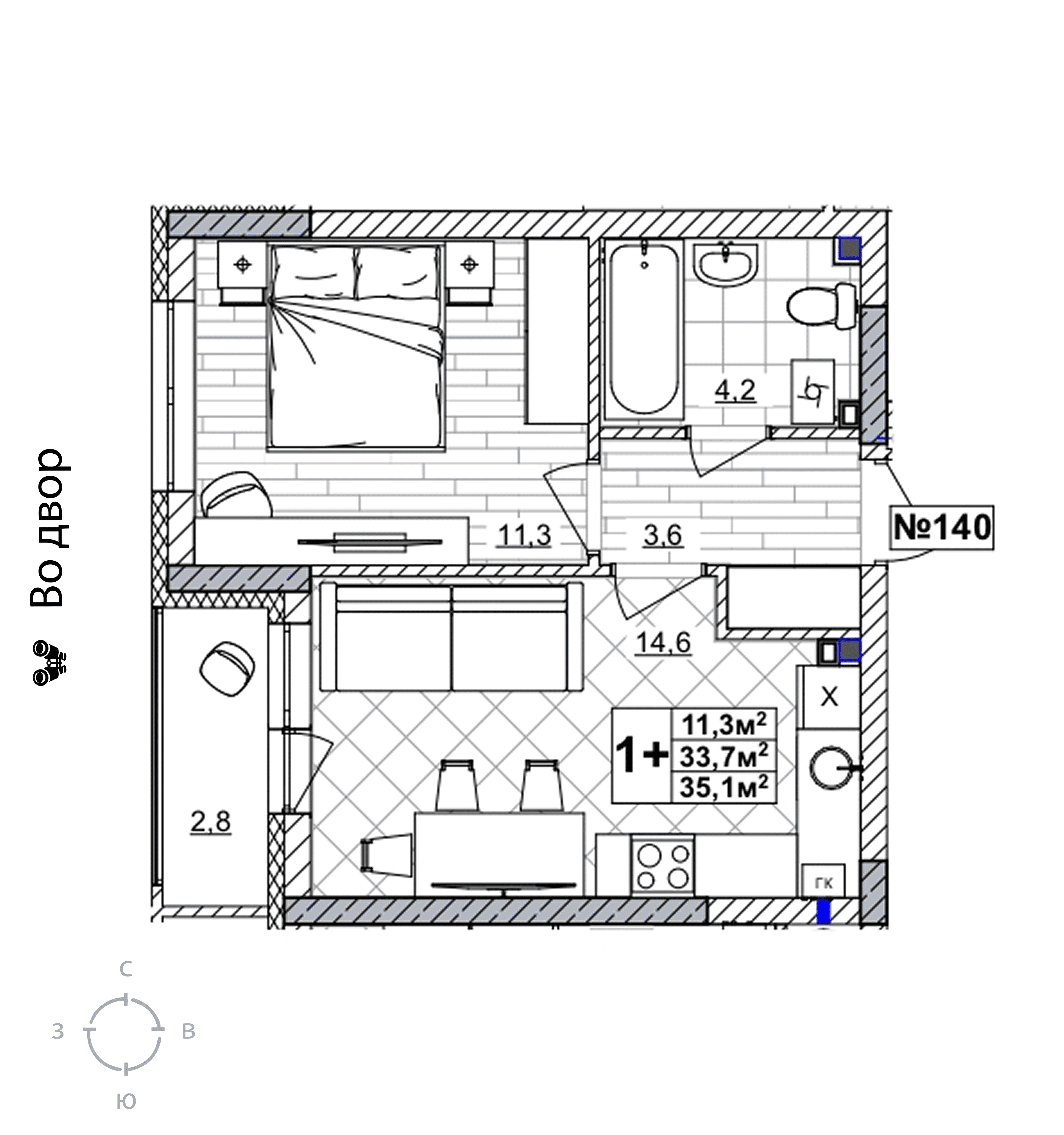 Квартира в Смородина 35.1м2 на 1 этаже за 5 590 000 Р.