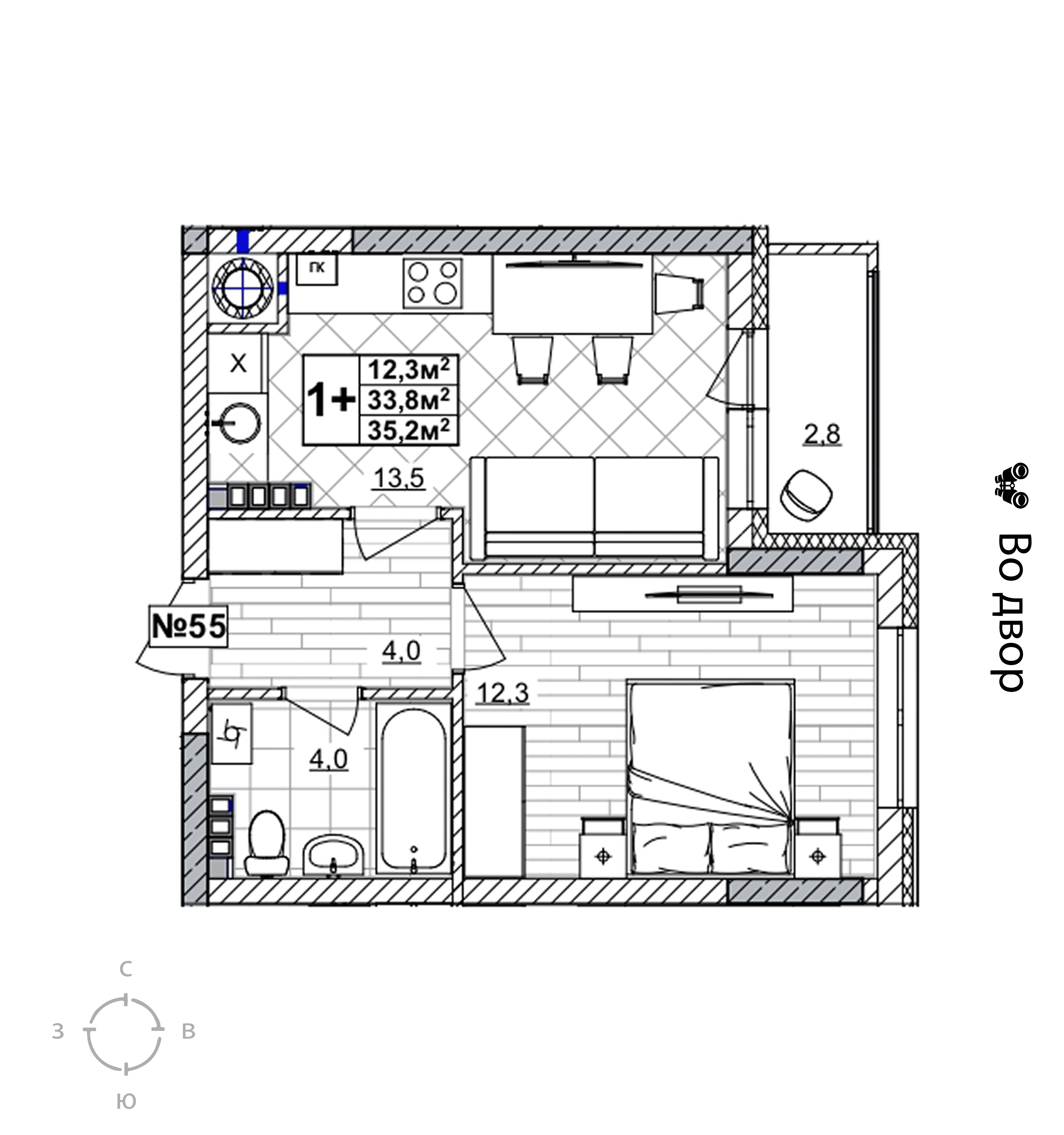 1-комнатная квартира - 35.2м2
