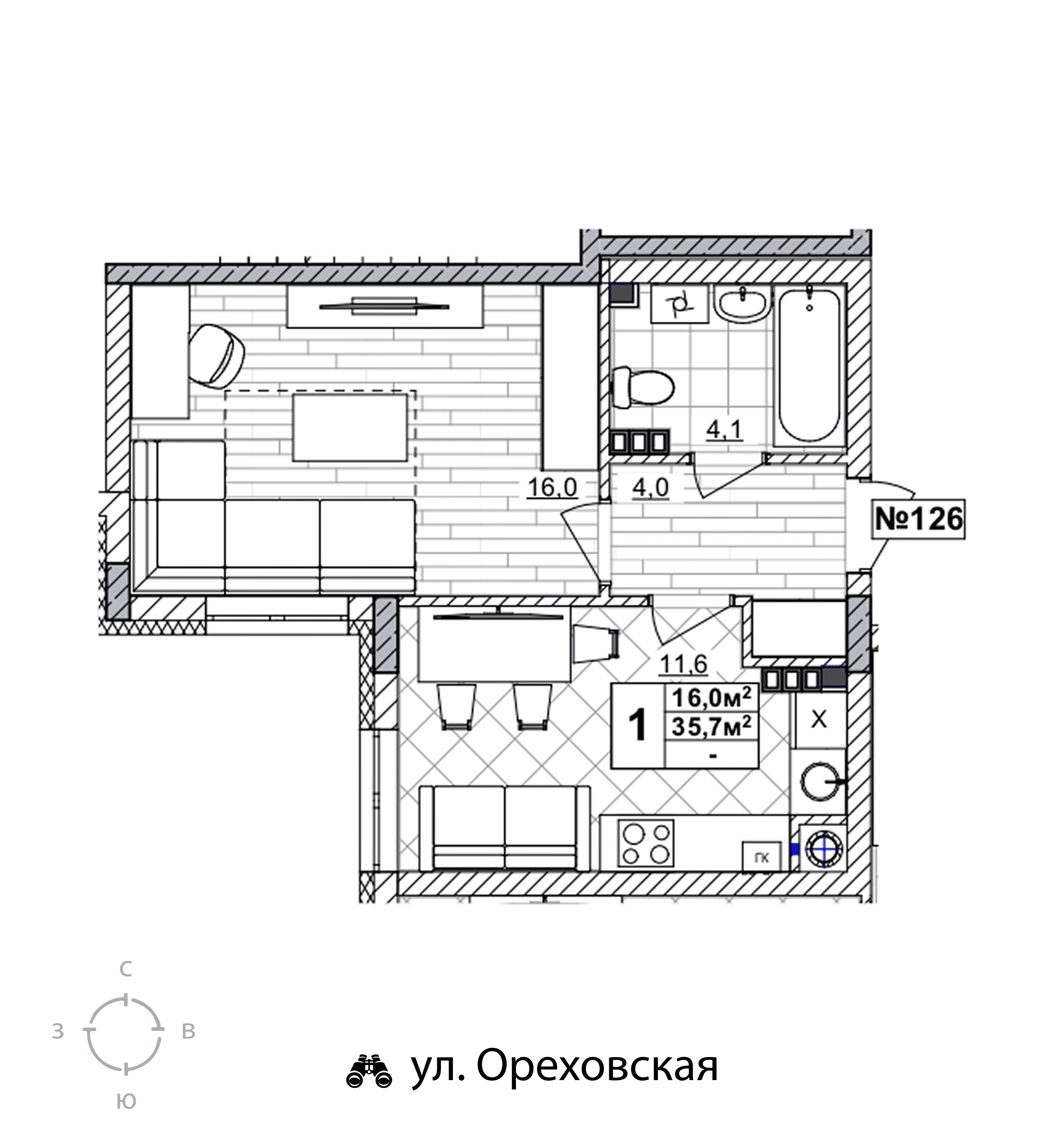 Квартира в Смородина 35.7м2 на 3 этаже за 6 590 000 Р.