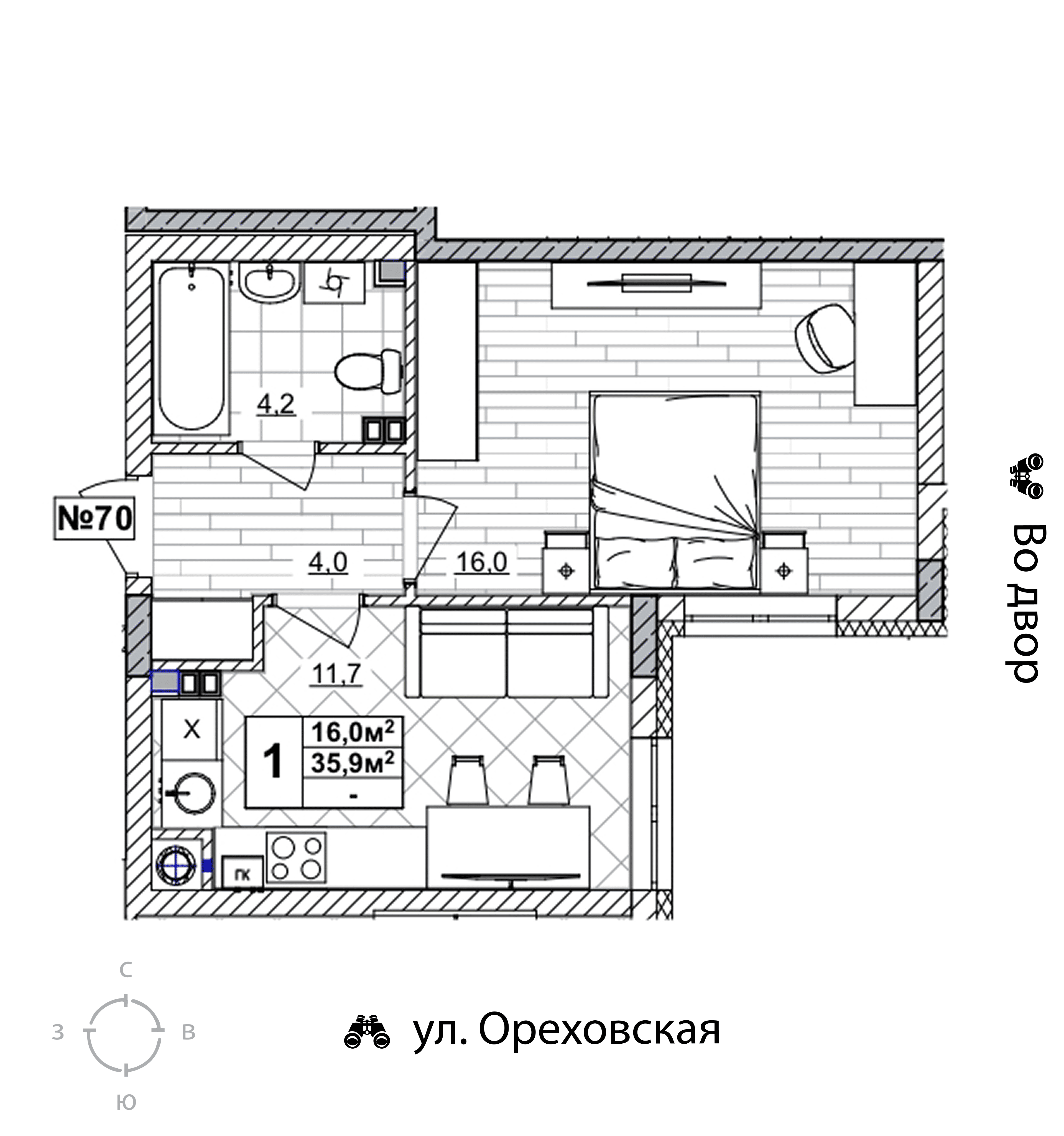 1-комнатная квартира - 35.9м2