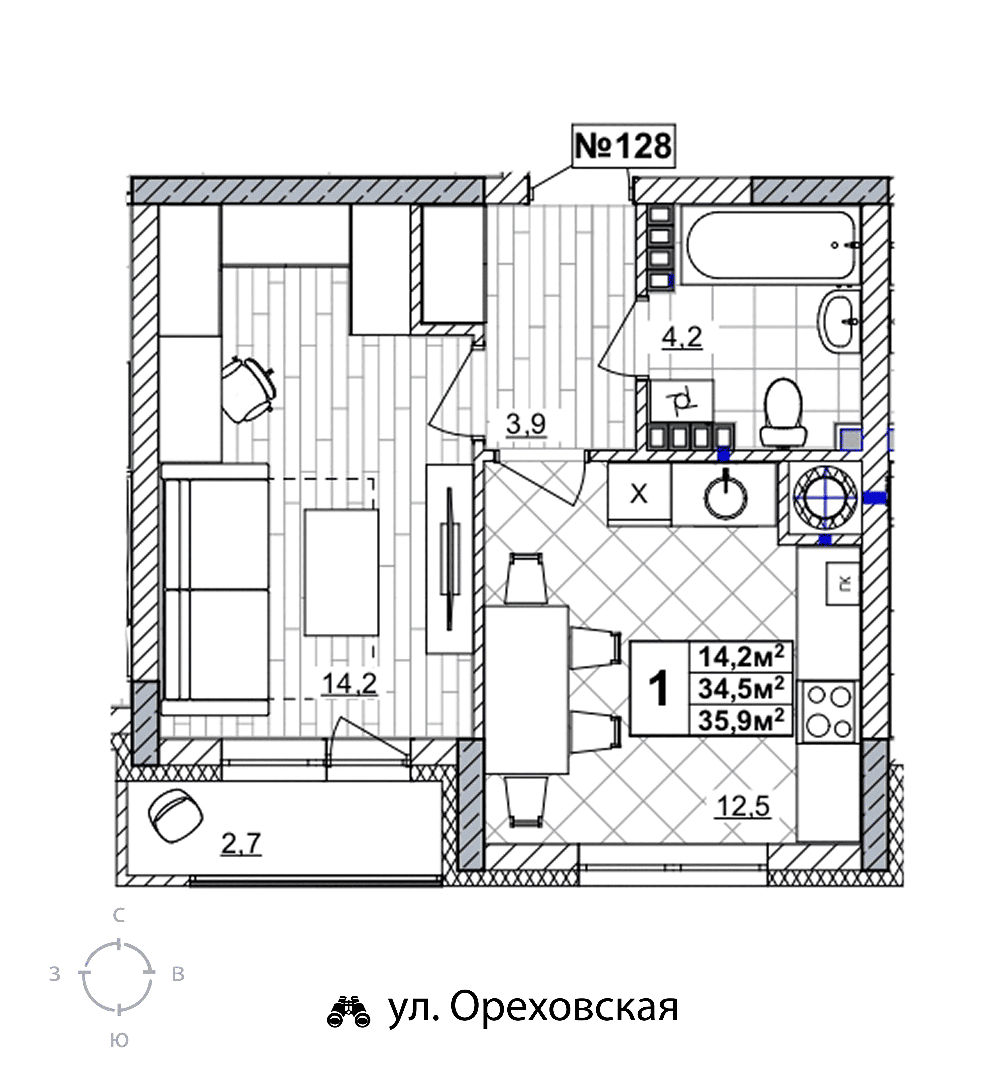 Квартира в Смородина 35.9м2 на 4 этаже за 6 390 000 Р.
