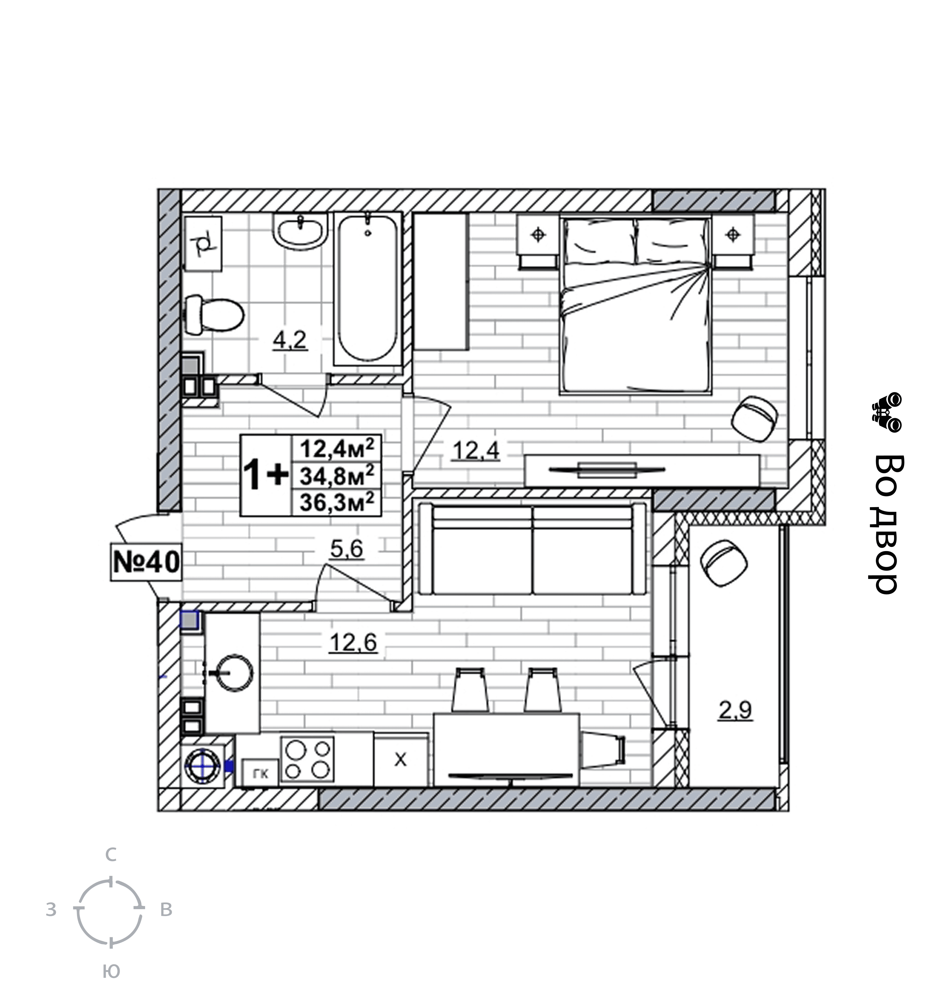 Квартира в Смородина 36.3м2 на 2 этаже за 6 390 000 Р.