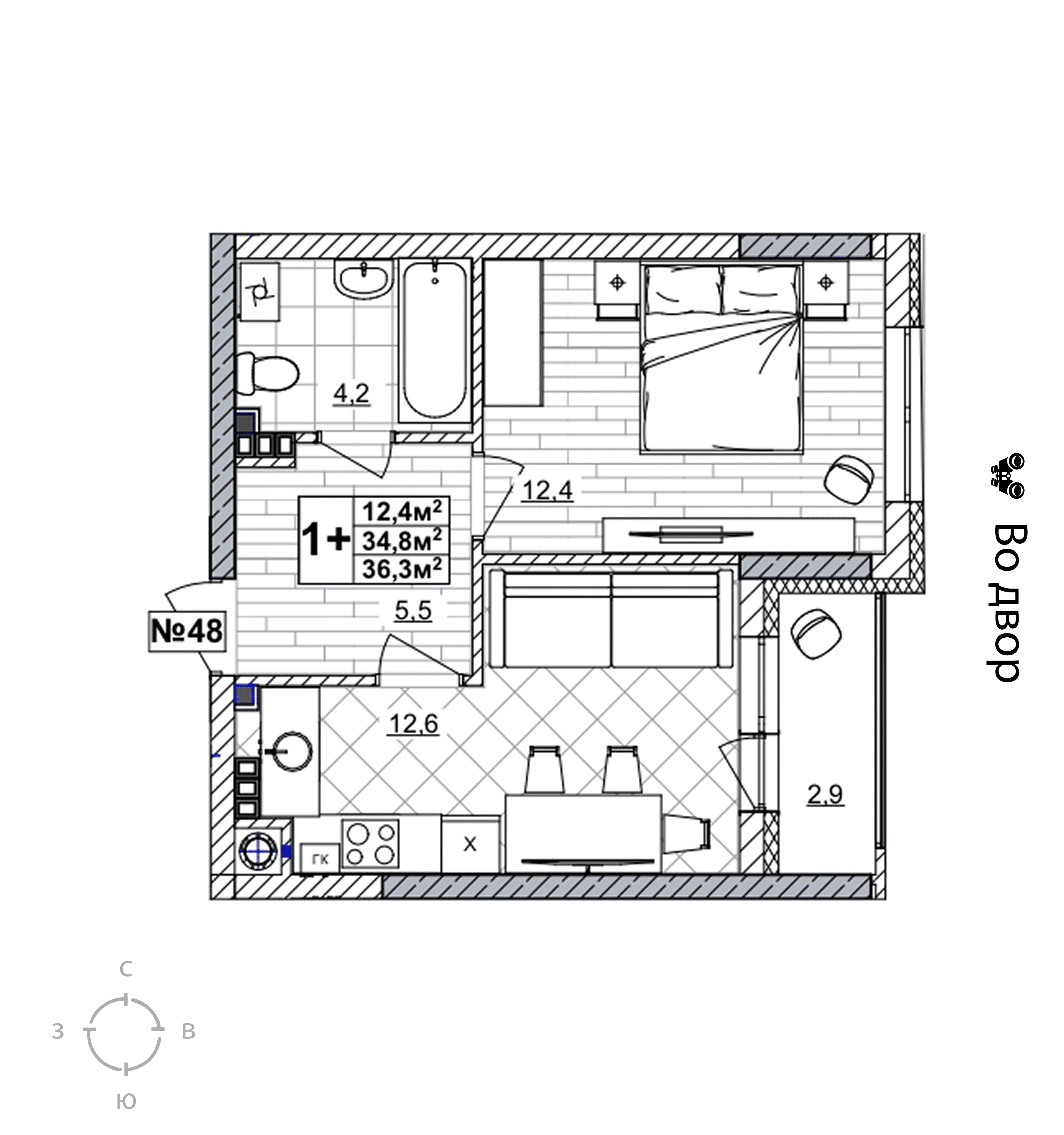 1-комнатная квартира - 36.3м2