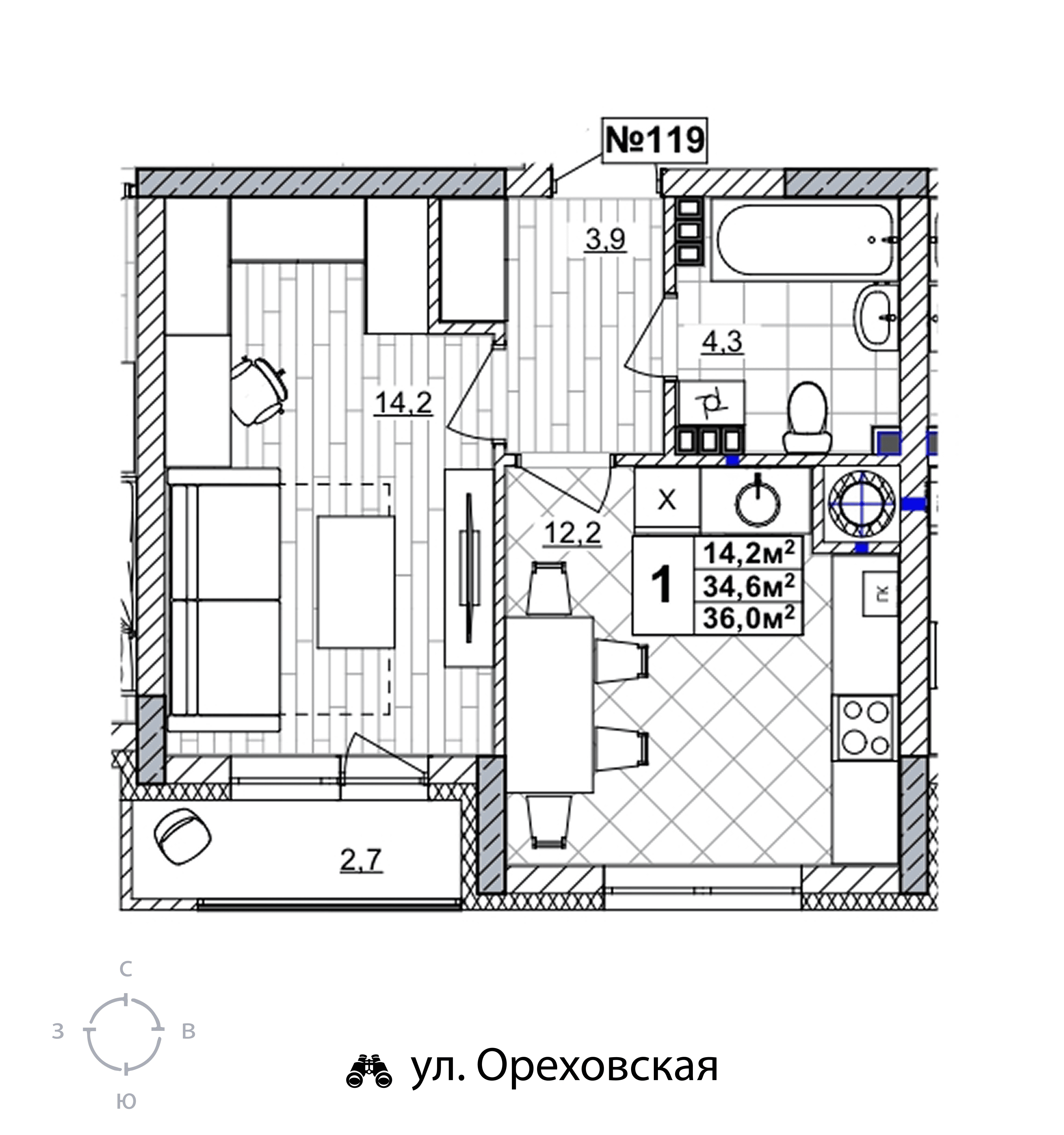 Квартира в Смородина 36м2 на 3 этаже за 6 990 000 Р.