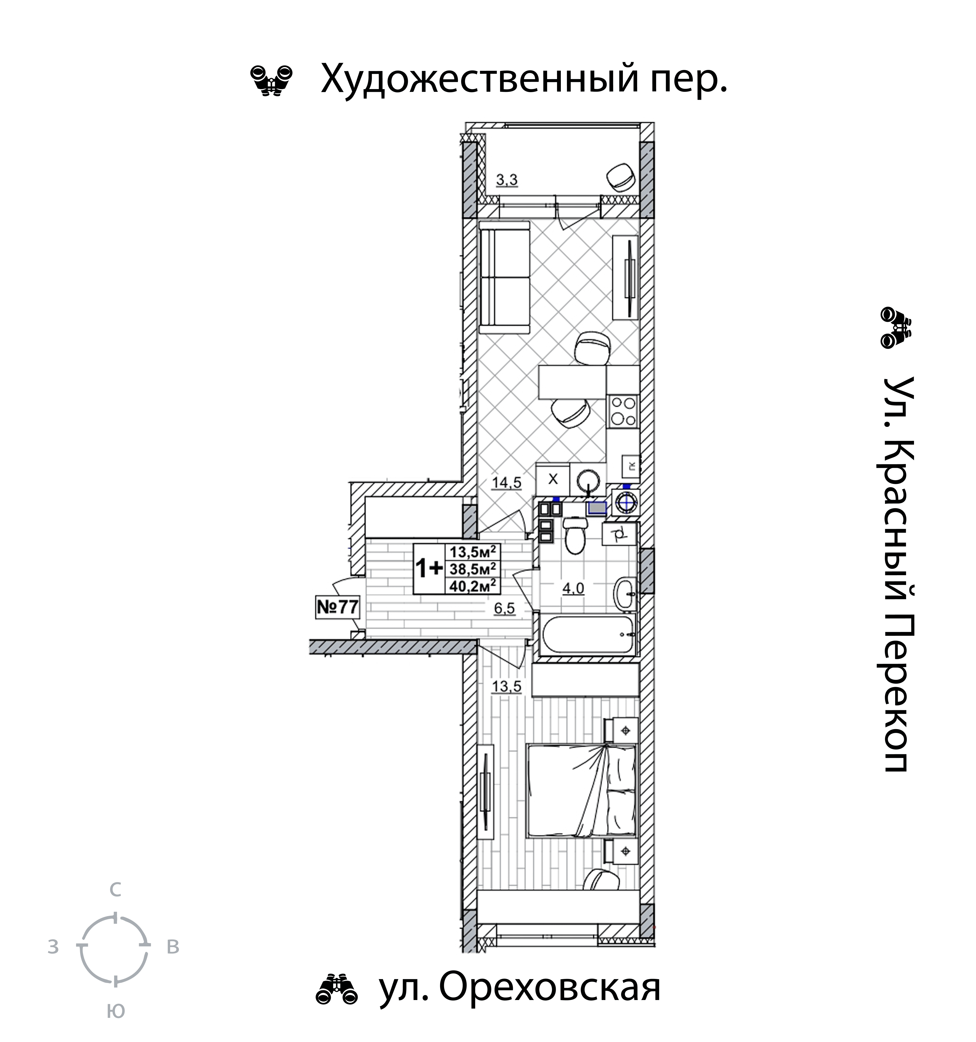 Квартира в Смородина 40.2м2 на 2 этаже за 7 590 000 Р.