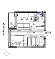Квартира в Смородина 41.9м2 на 4 этаже за 7 390 000 Р.