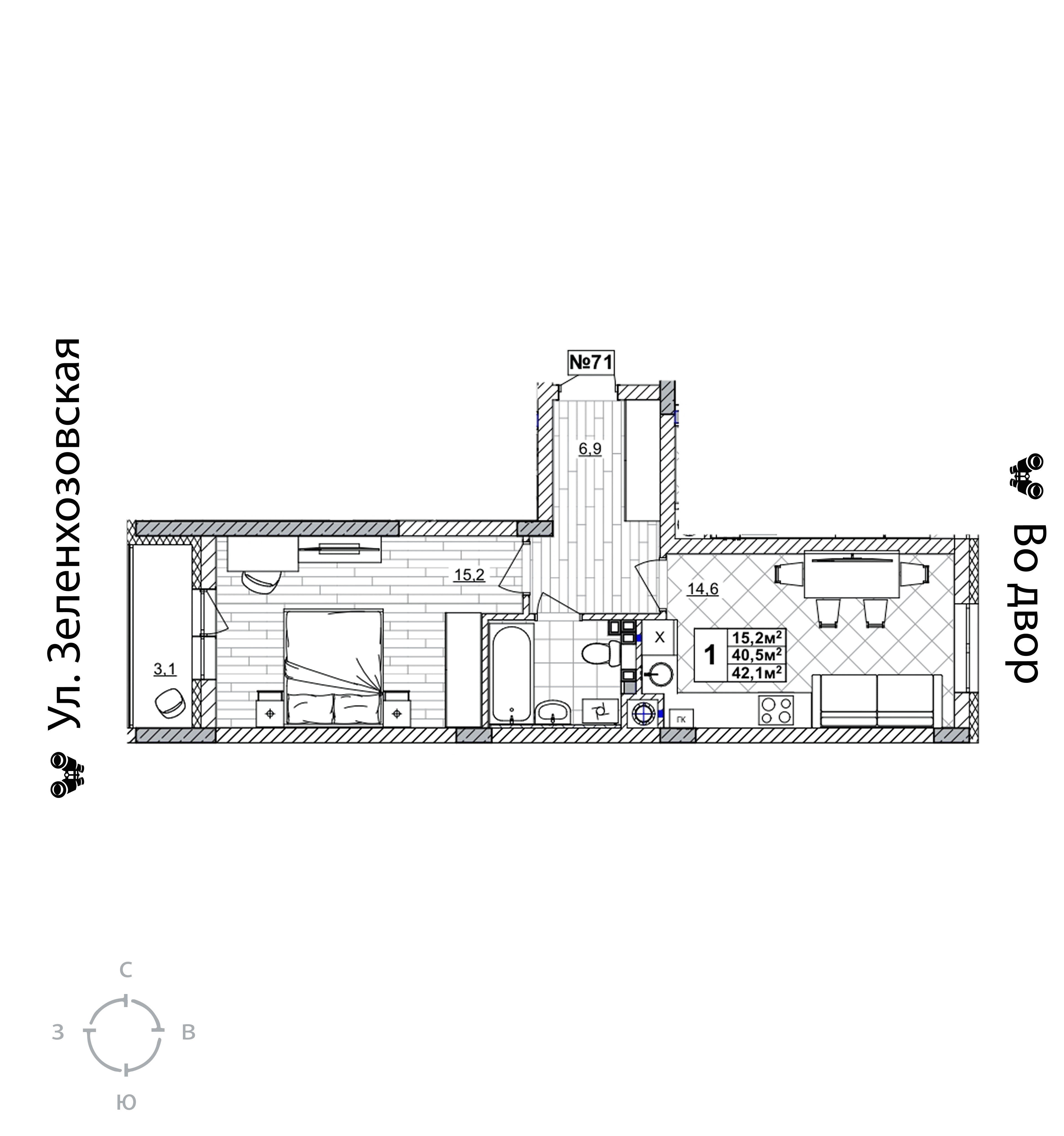 1-комнатная квартира - 42.1м2