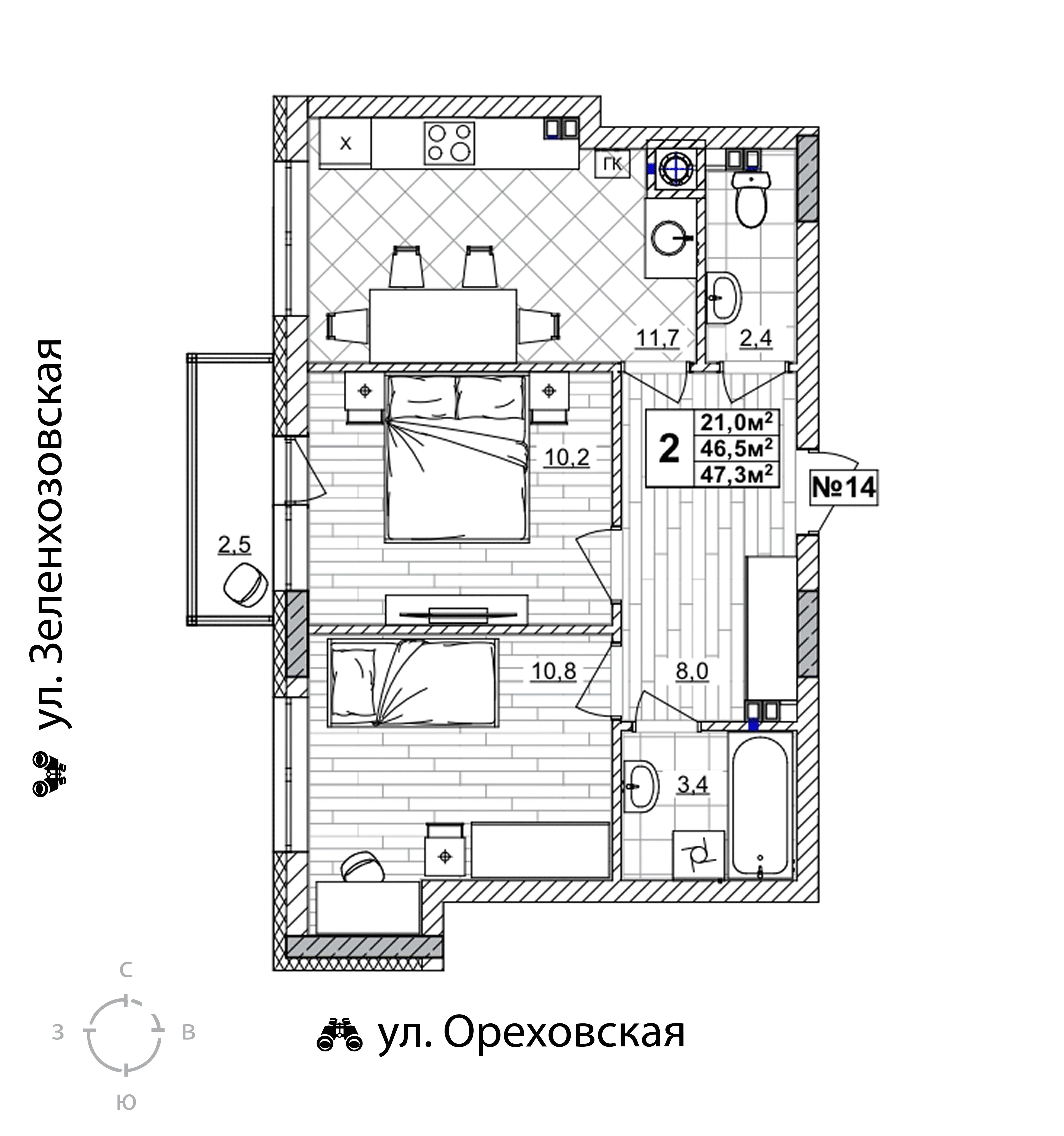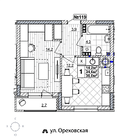 Квартира в Смородина 47.3м2 на 2 этаже за 8 390 000 Р.