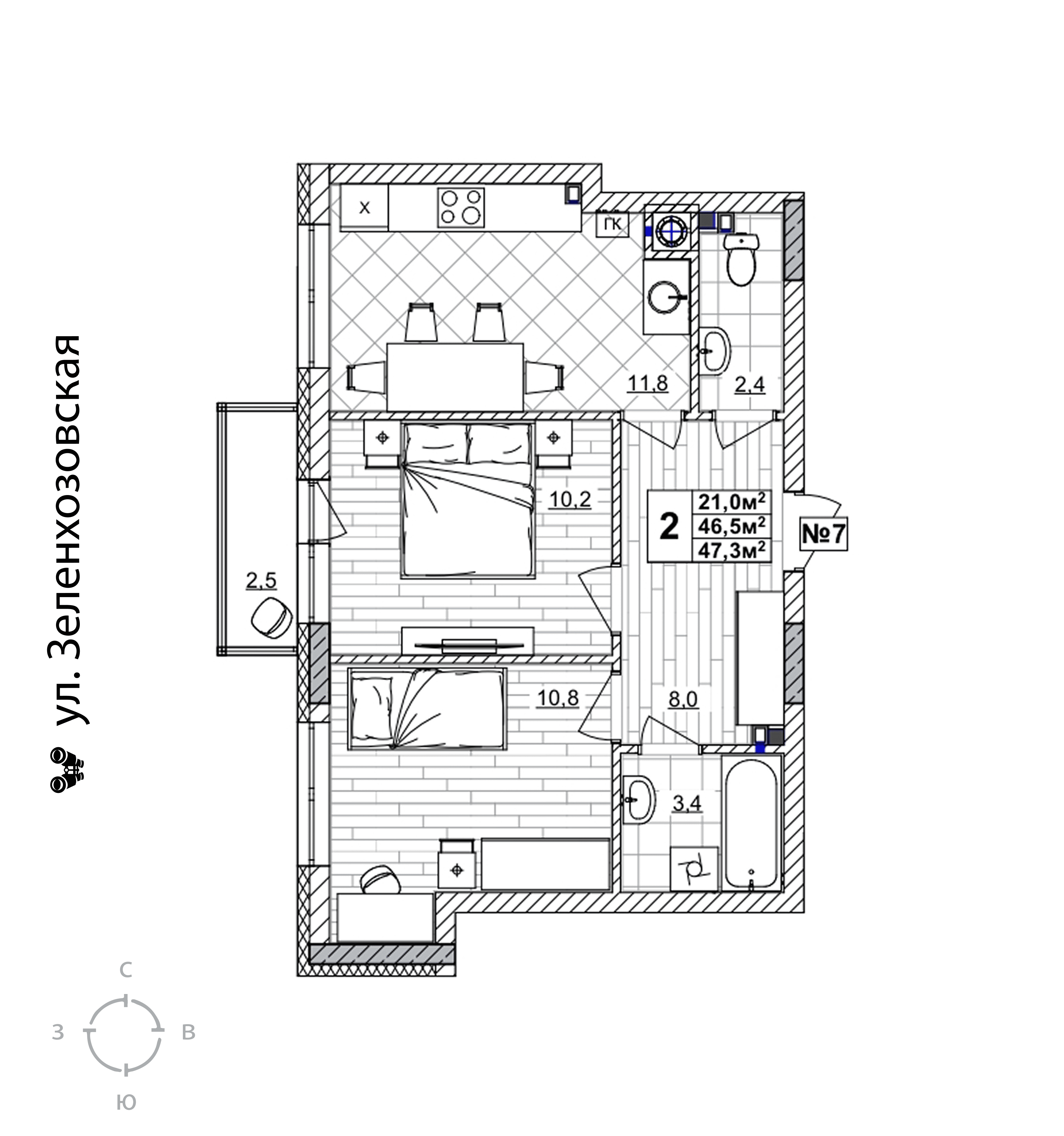 2-комнатная квартира - 47.4м2