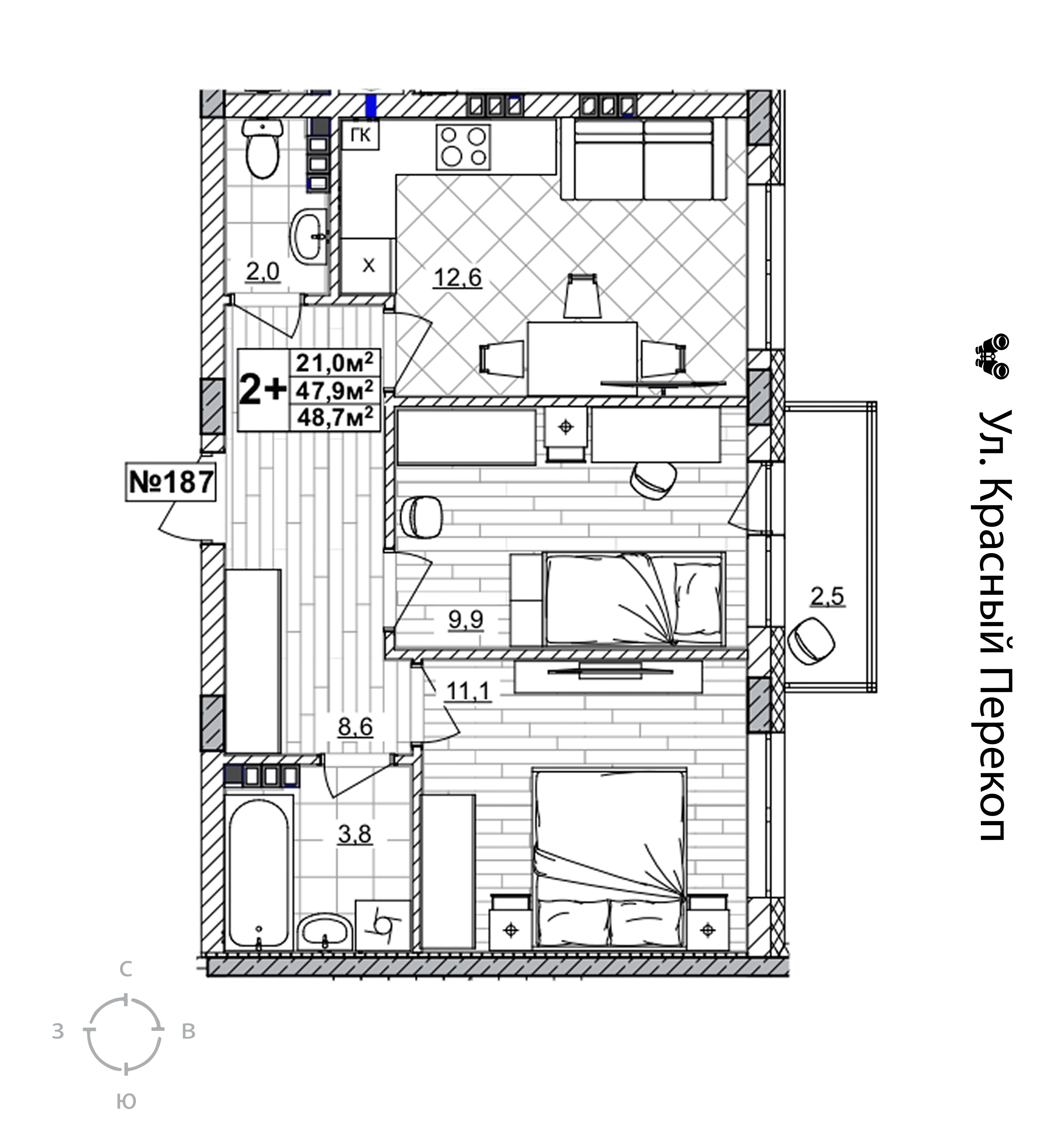 Квартира в Смородина 48.7м2 на 3 этаже за 8 590 000 Р.