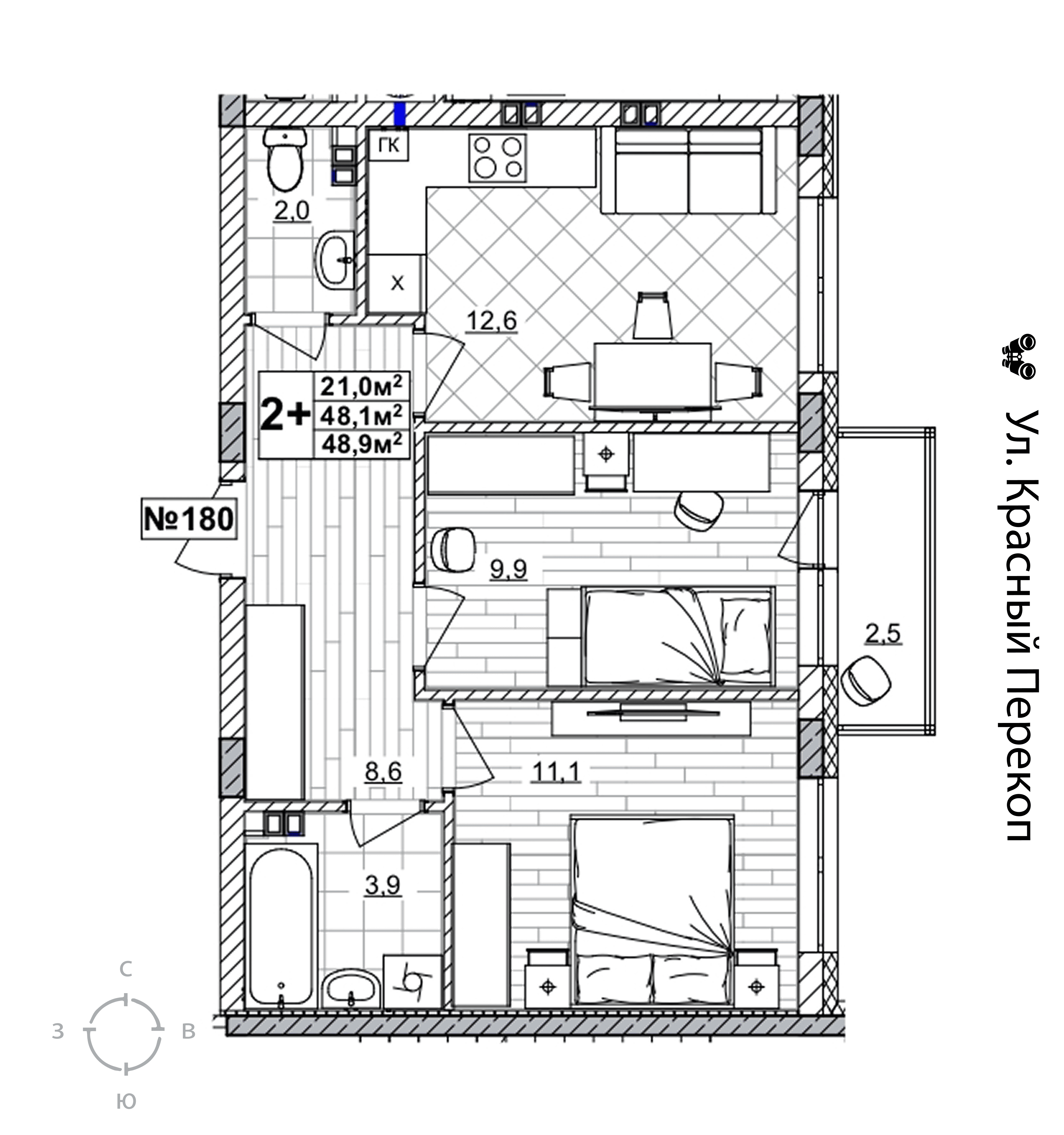 Квартира в Смородина 48.9м2 на 2 этаже за 8 290 000 Р.
