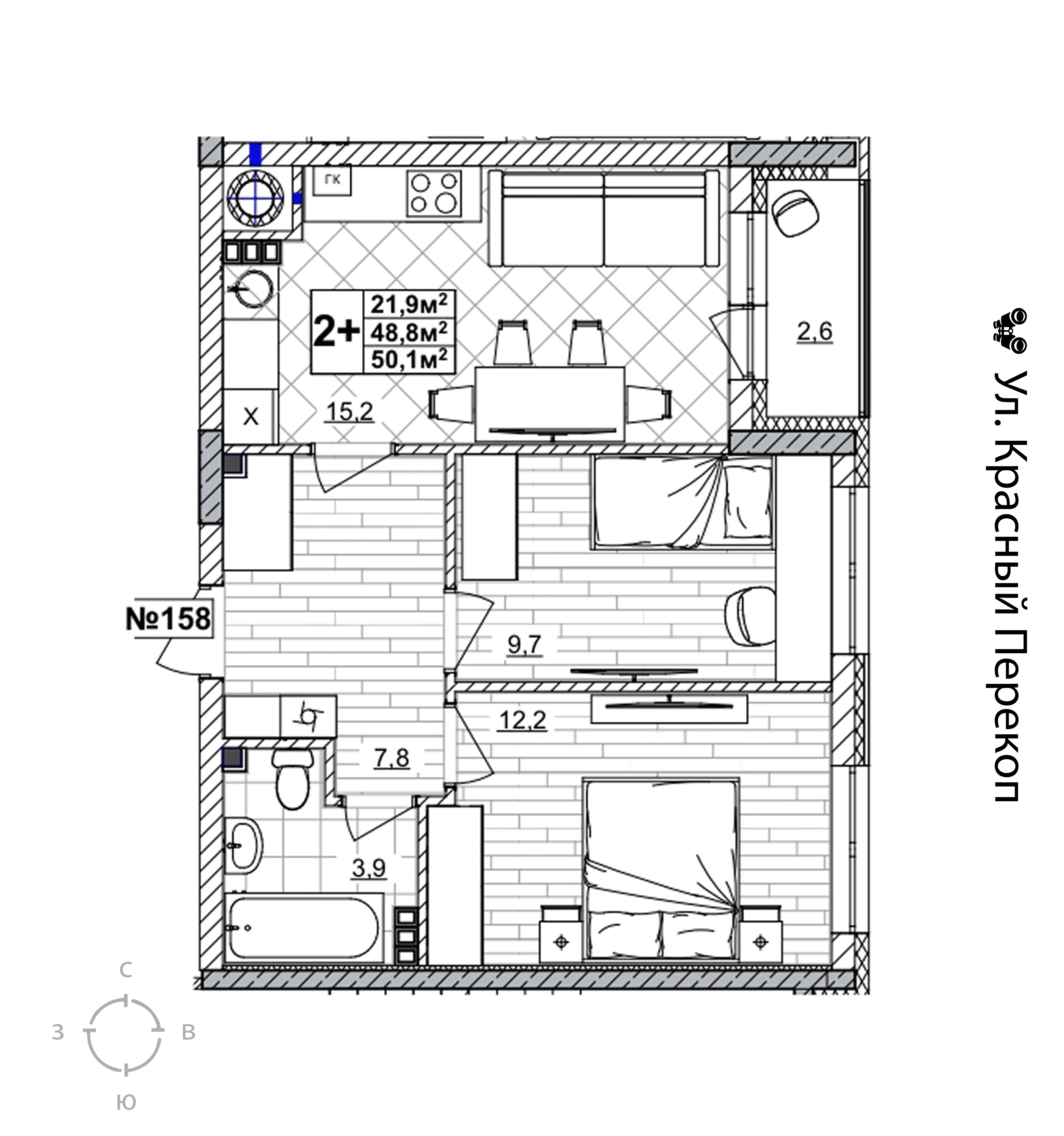 Квартира в Смородина 50.1м2 на 3 этаже за 8 790 000 Р.