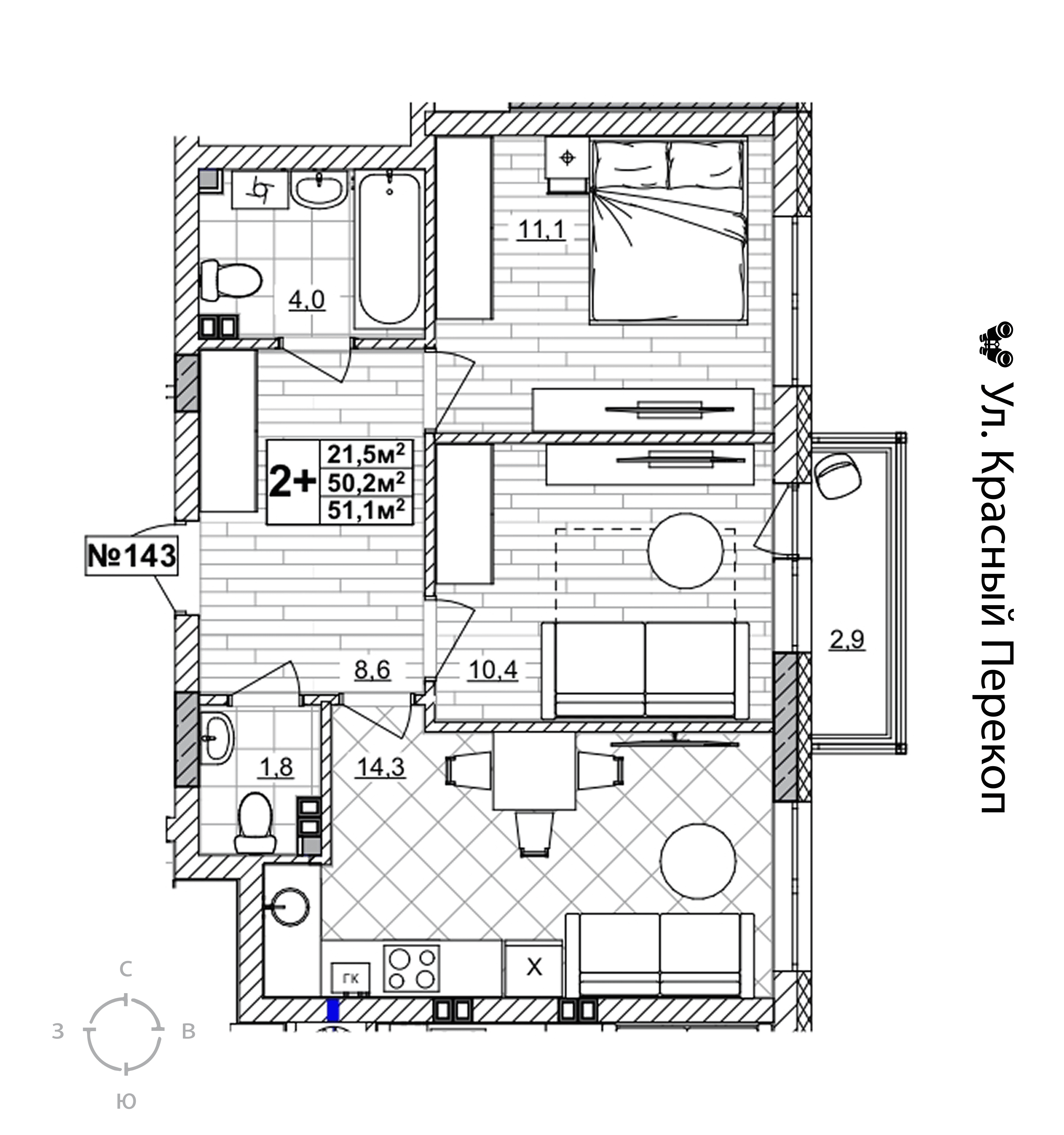 2-комнатная квартира - 51.1м2