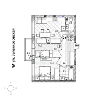 2-комнатная квартира - 51.5м2
