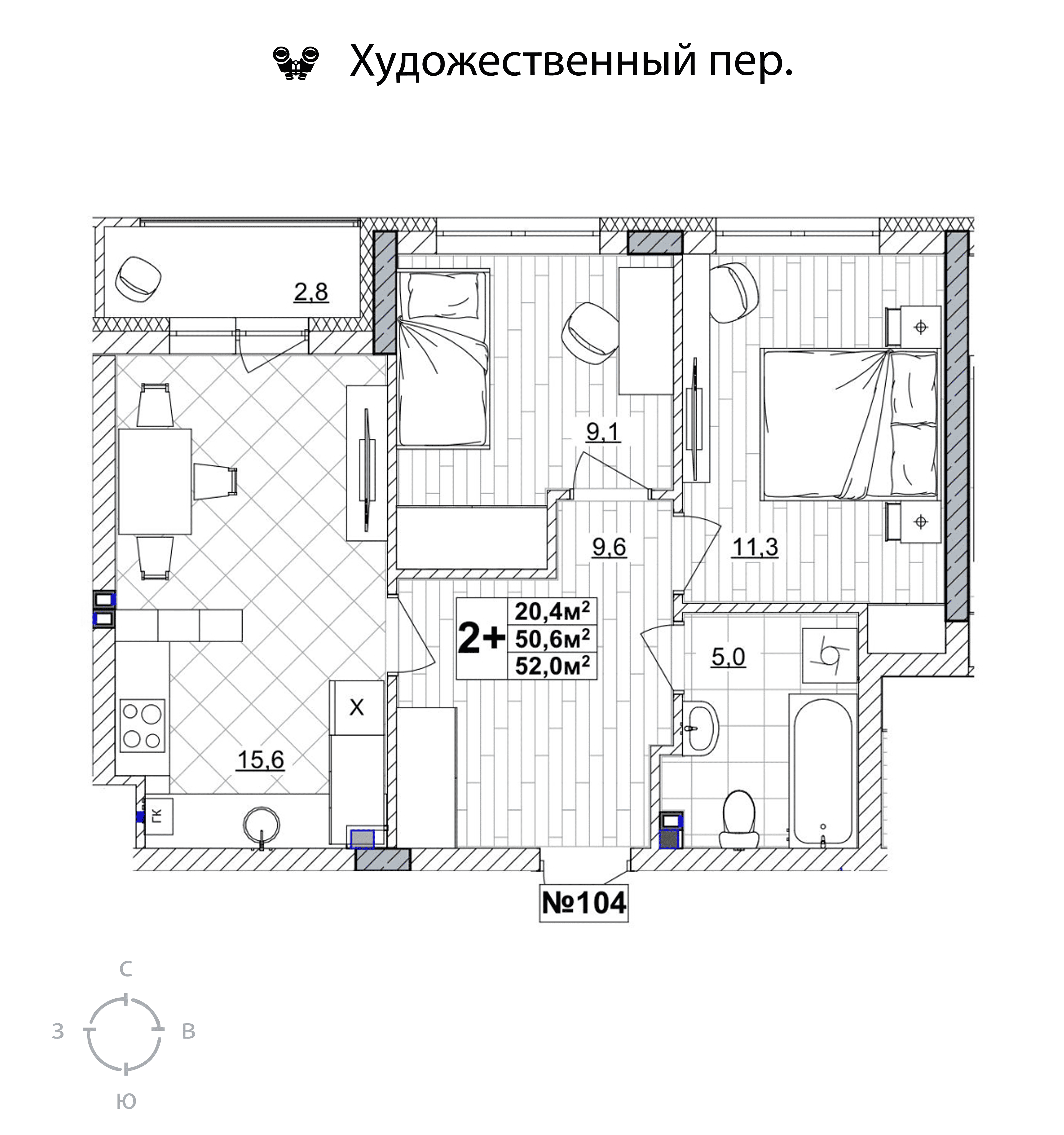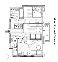 2-комнатная квартира - 52м2