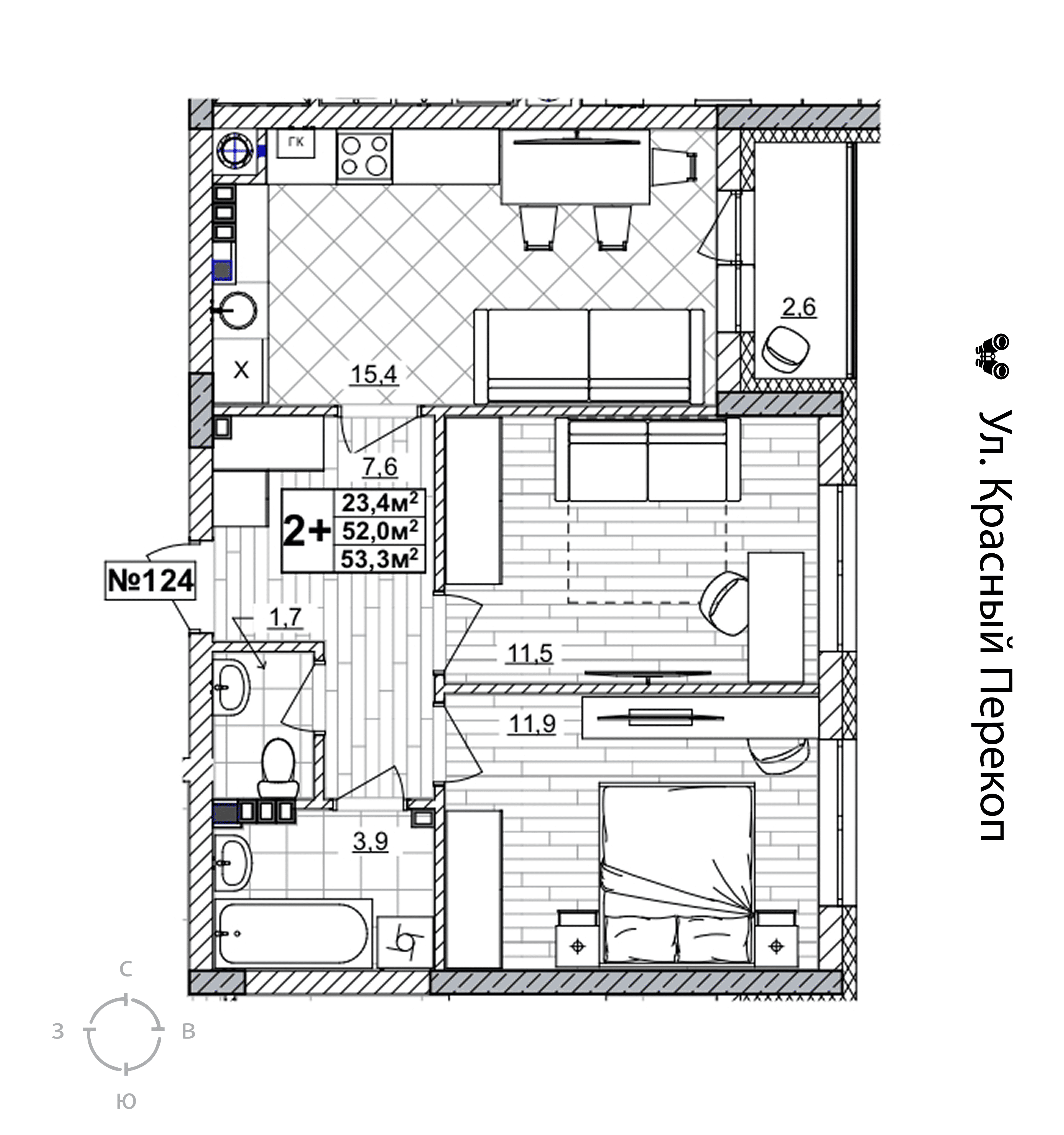 2-комнатная квартира - 53.3м2