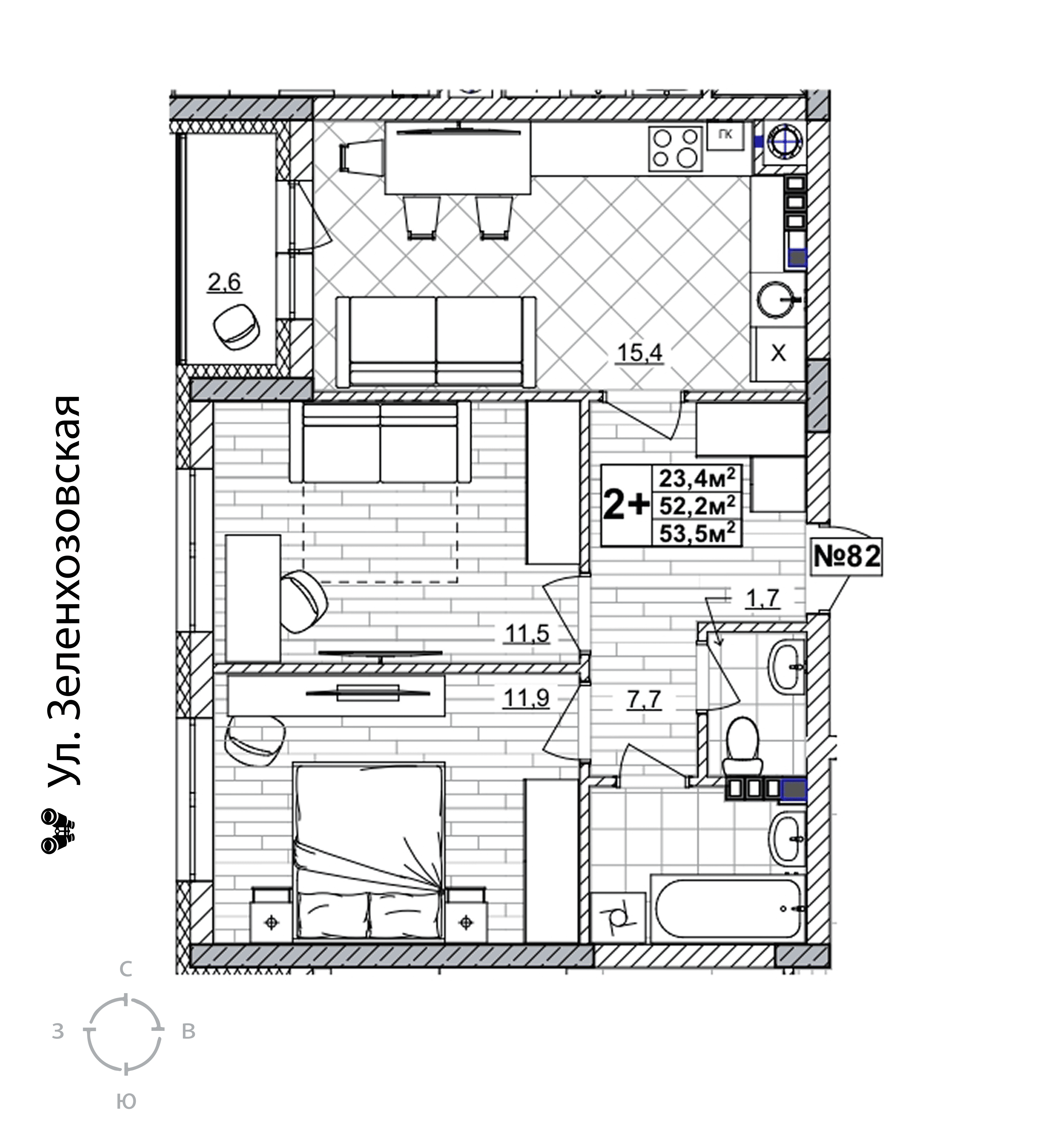 Квартира в Смородина 53.4м2 на 3 этаже за 9 190 000 Р.