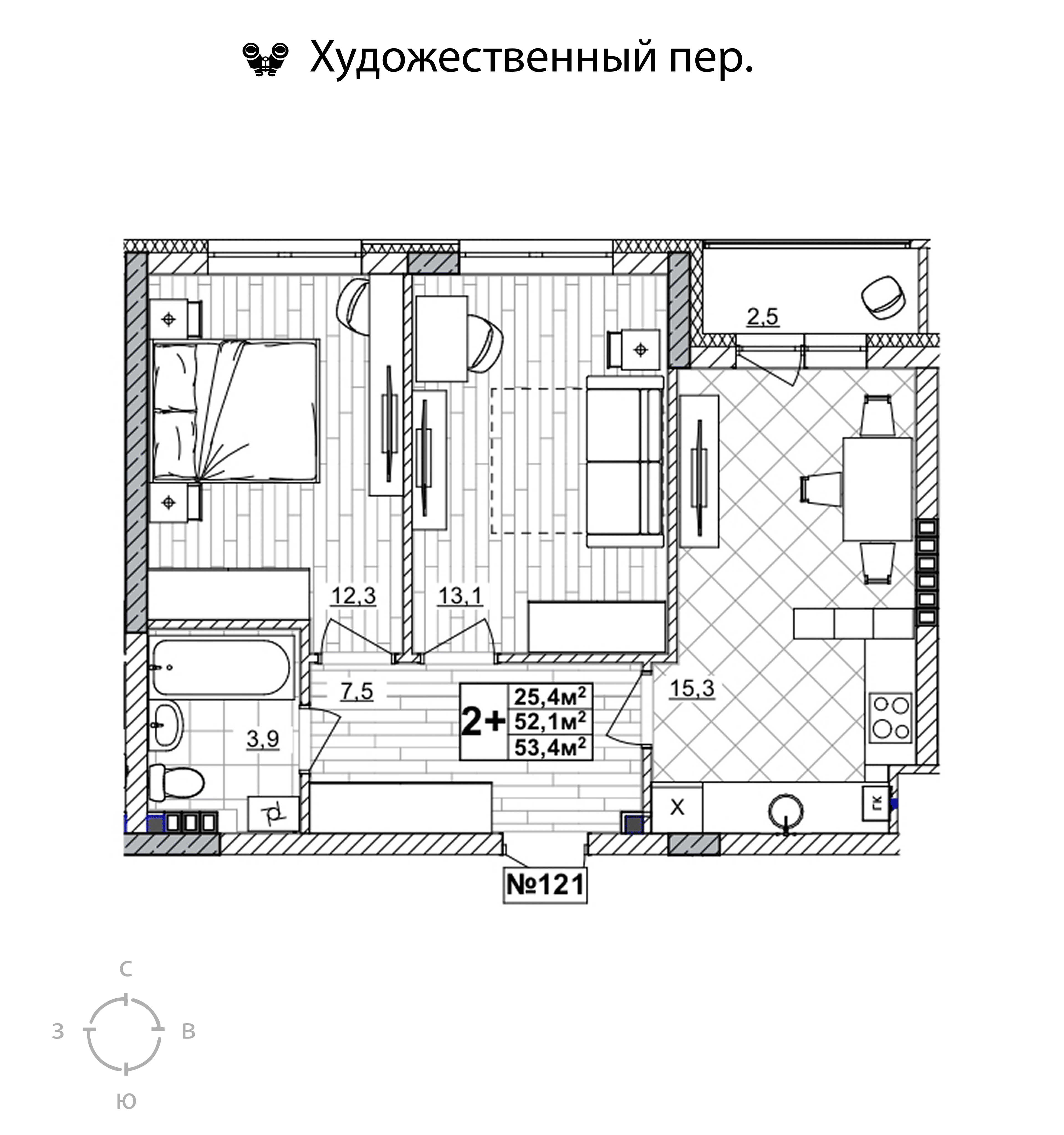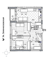 2-комнатная квартира - 53.4м2