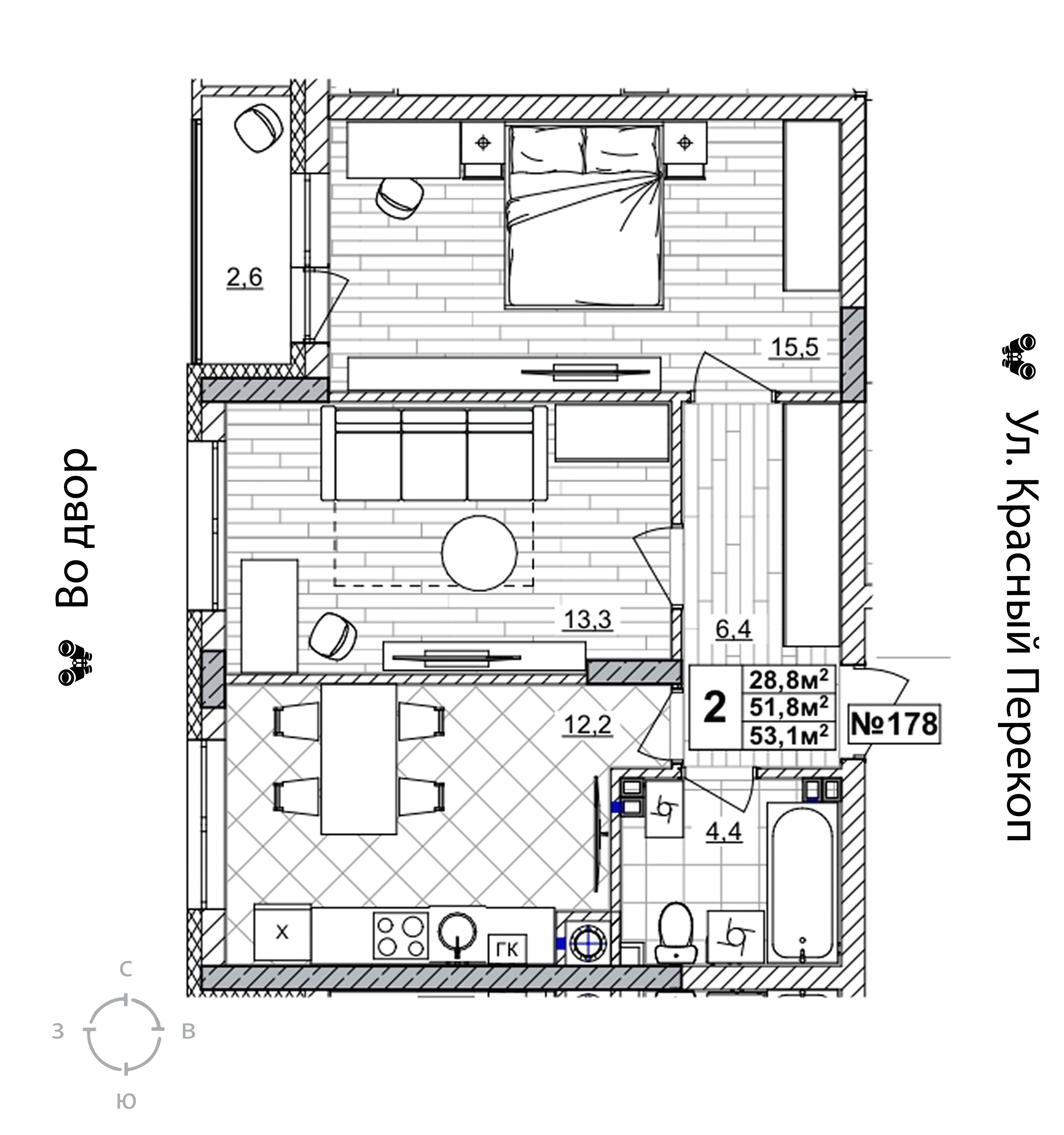 2-комнатная квартира - 53м2