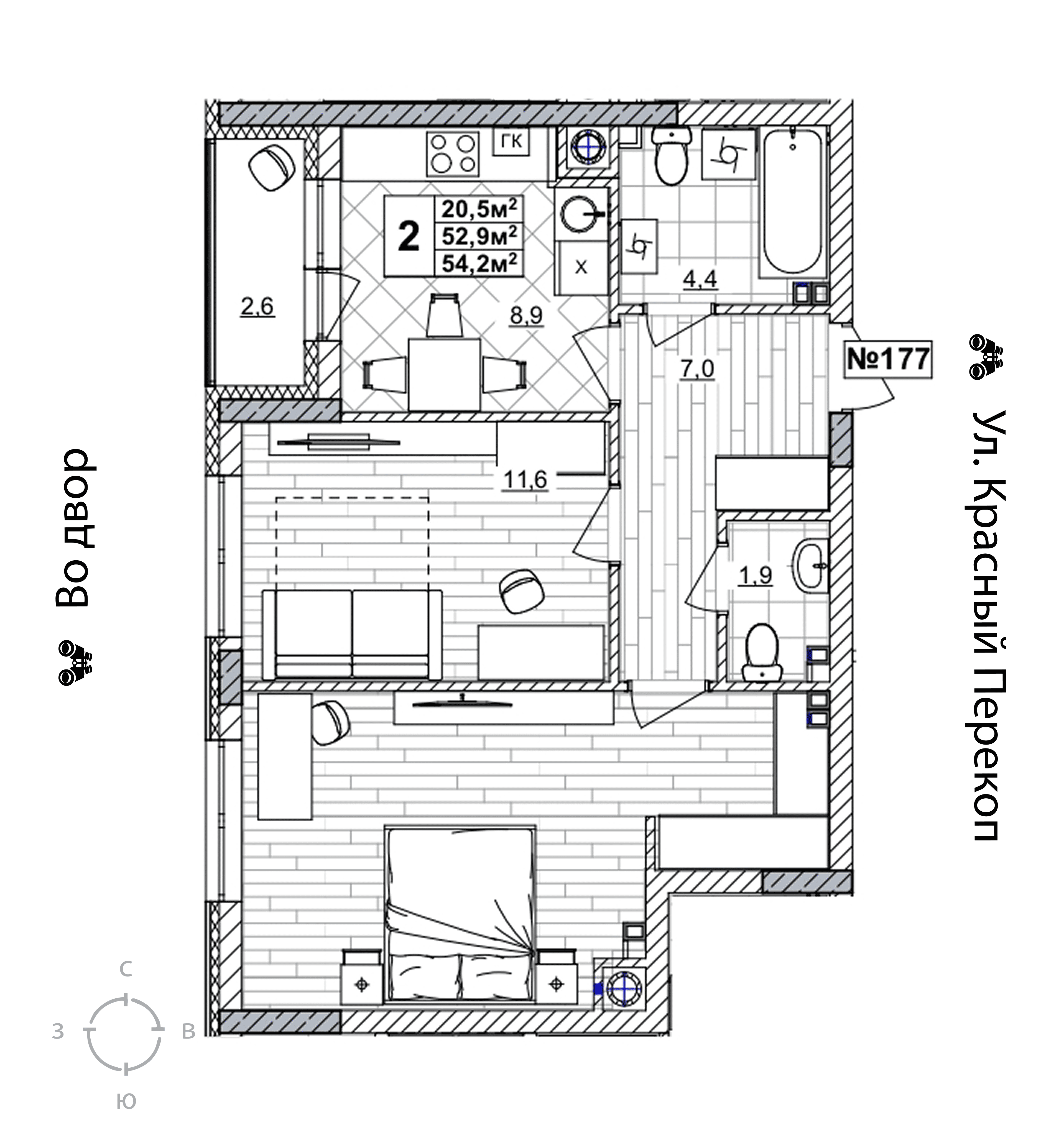 Квартира в Смородина 54.2м2 на 2 этаже за 8 590 000 Р.