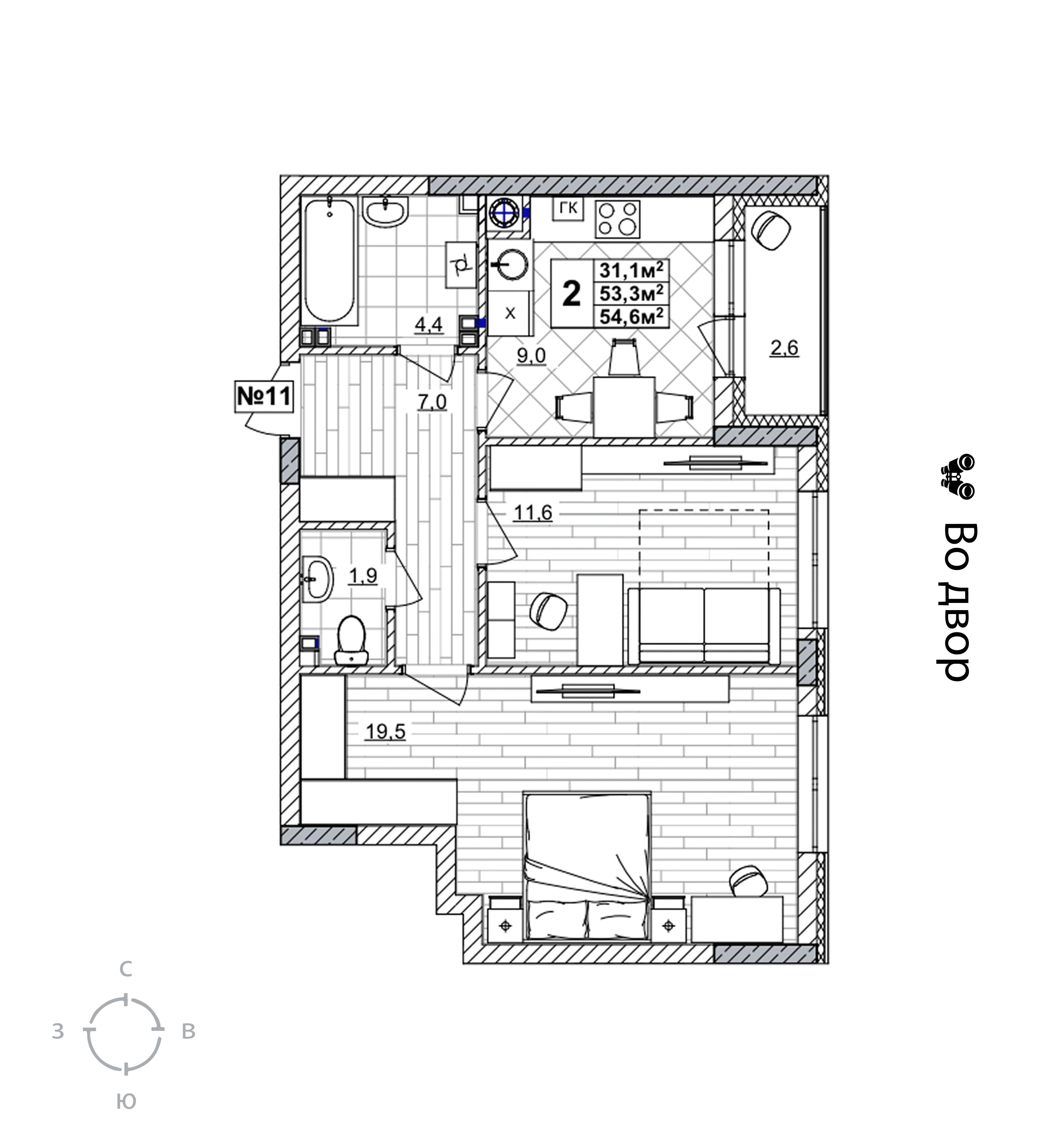 2-комнатная квартира - 54.6м2