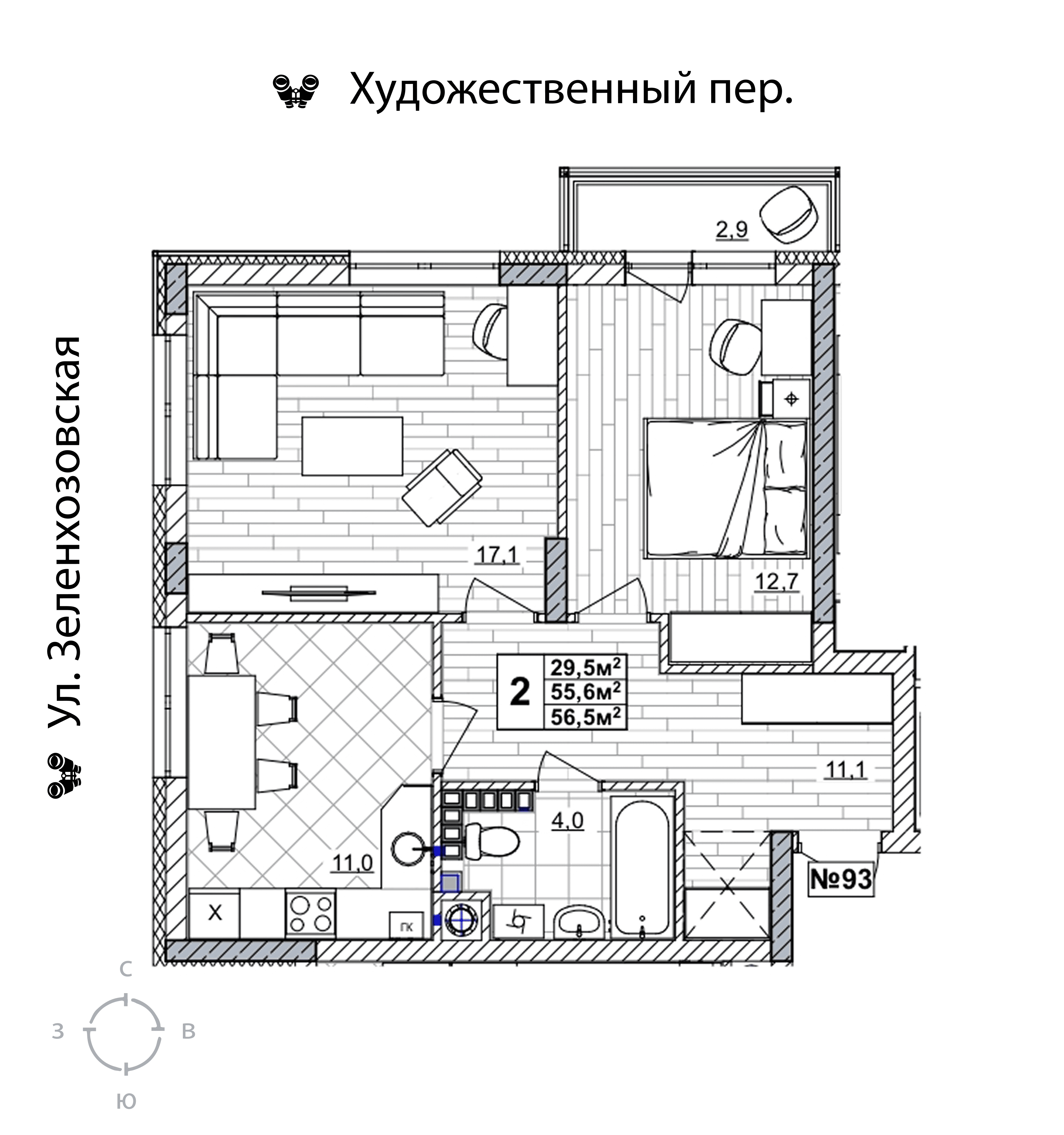 Квартира в Смородина 56.5м2 на 4 этаже за 8 790 000 Р.