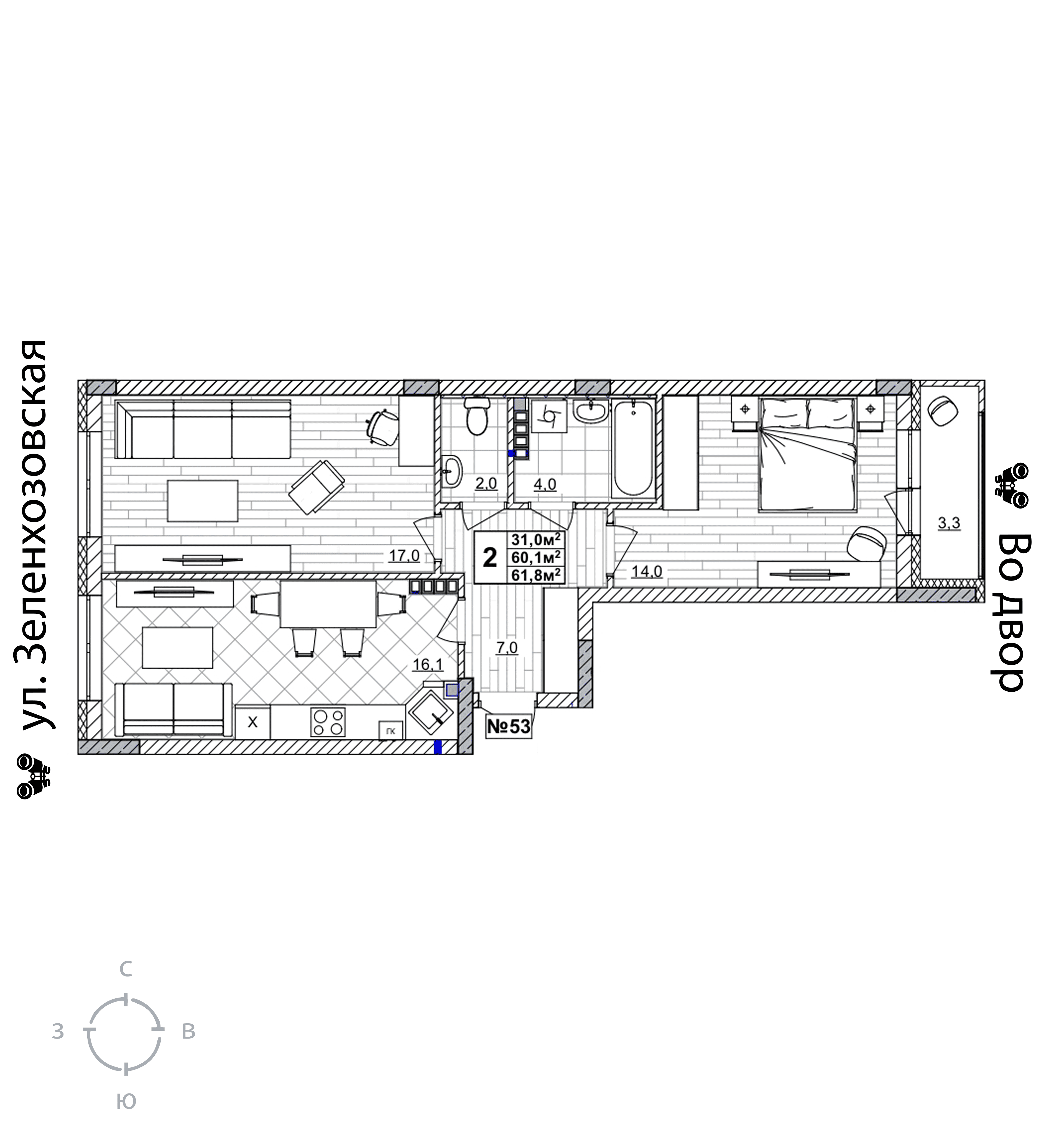 2-комнатная квартира - 61.8м2