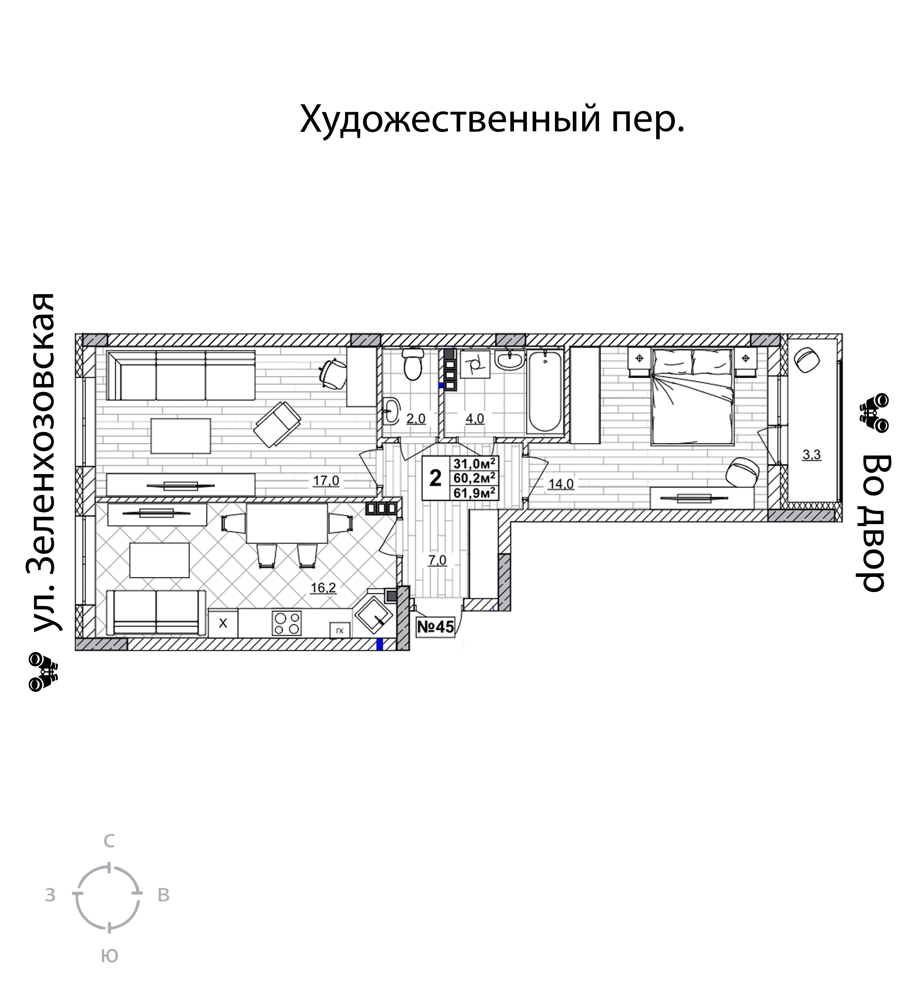 Квартира в Смородина 61.9м2 на 3 этаже за 10 190 000 Р.
