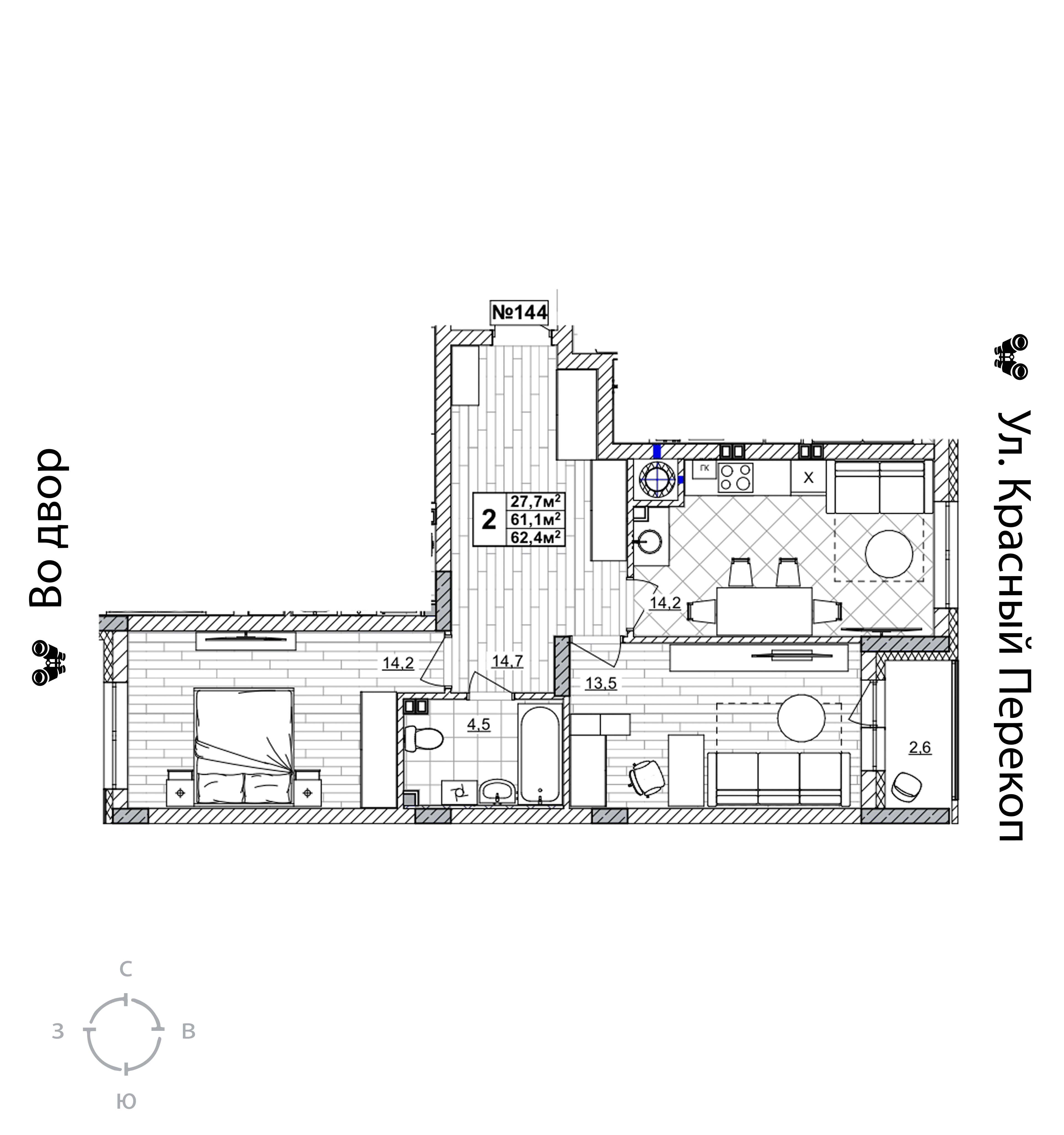 Квартира в Смородина 62.4м2 на 2 этаже за 9 590 000 Р.